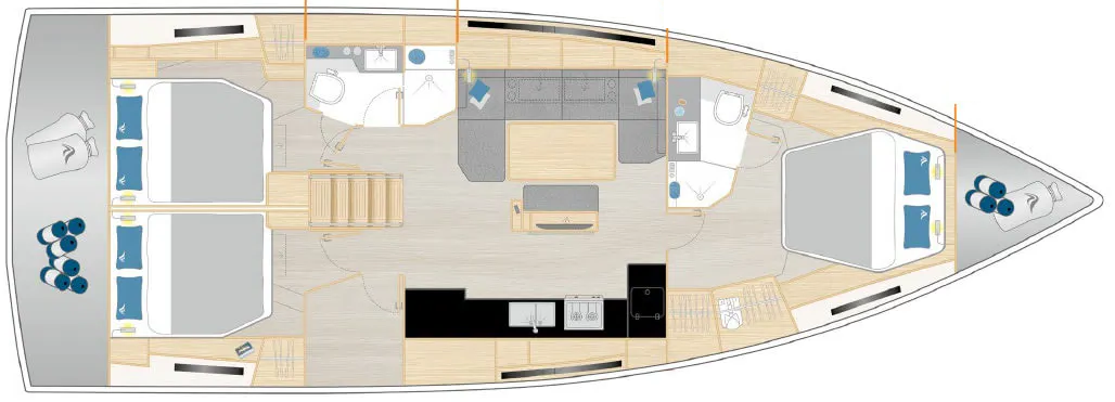 | Kabinen: | 3+1 | Kojen: | 6+1 |
