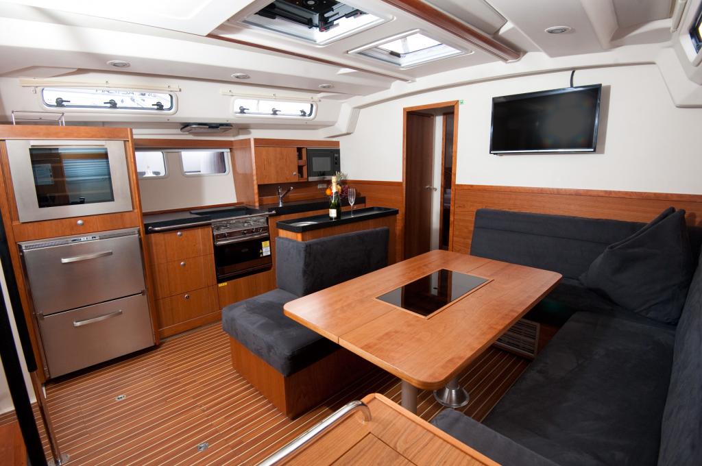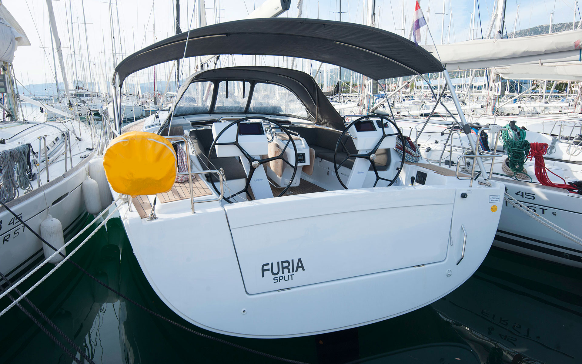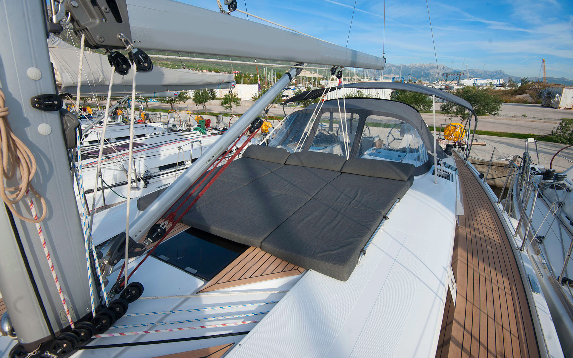 | Outside | Biminitop, Cockpitdusche, Cockpitdusche warm/kalt, Cockpitlautsprecher, Cockpitpolster, Cockpittisch, elektr. Ankerwinsch, elektr. Winsch, Sprayhood, Teak im Cockpit, Teakdeck |