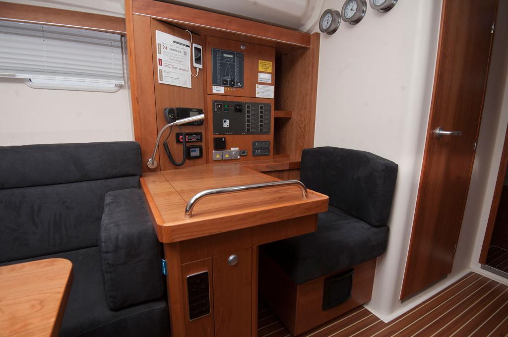 | Navigation | Echolot, GPS mit Kartenplotter im Cockpit, Hafenhandbücher, Kompass, Seekarten, Sumlog, Windmesser |