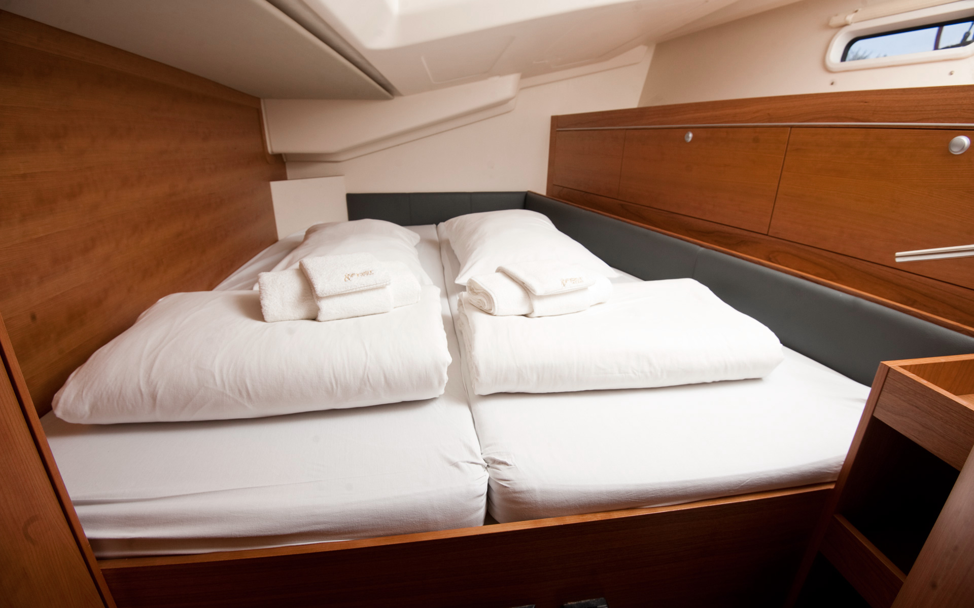 | Safety | Automatikwesten, Autopilot, Bordapotheke, Bugstrahlruder, elektr. Bilgepumpe, Feuerlöscher, Handbilgepumpe, Lifebelts, Notsignale, Rettungsinsel, UKW-Funk m. DSC |