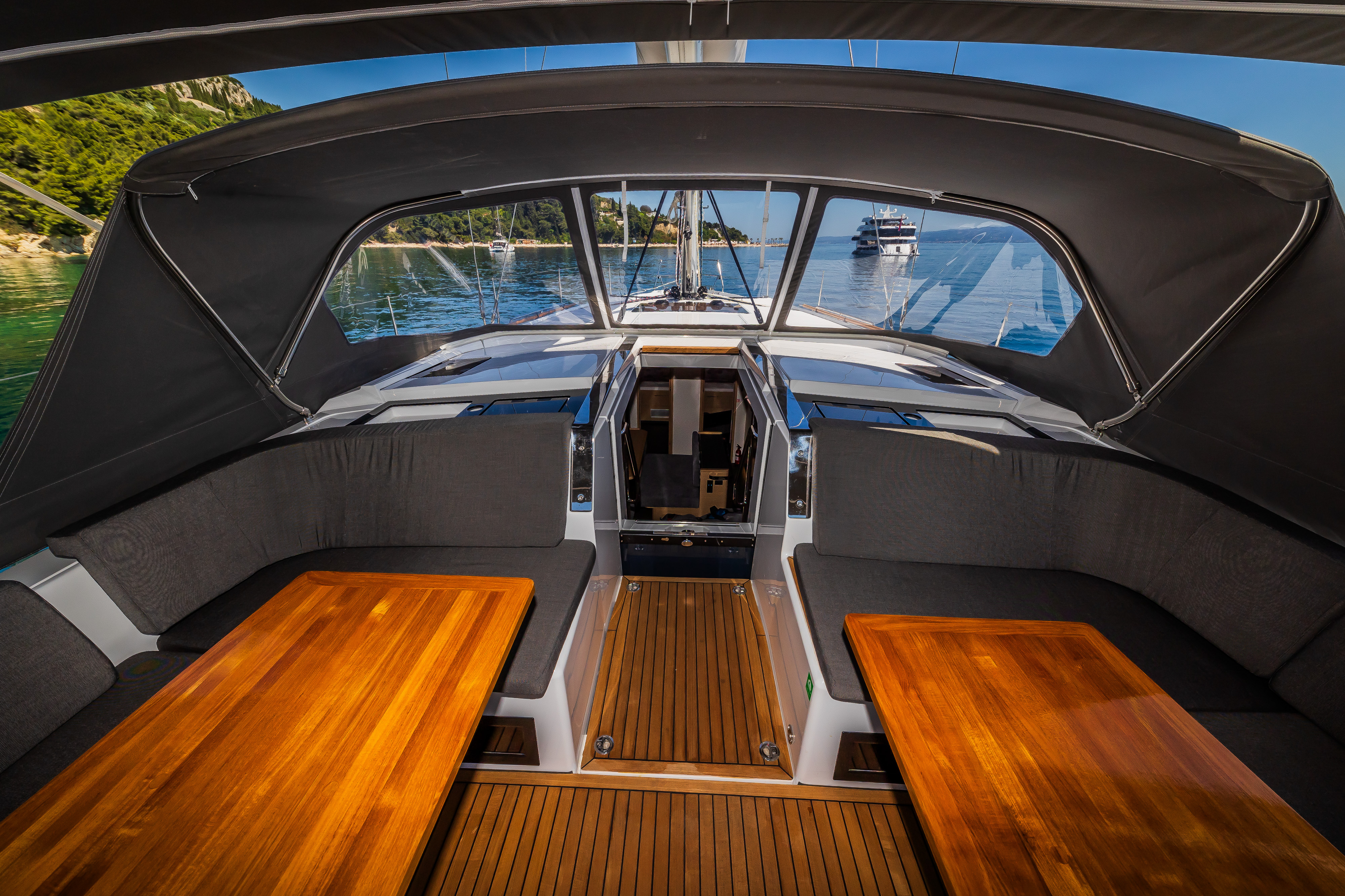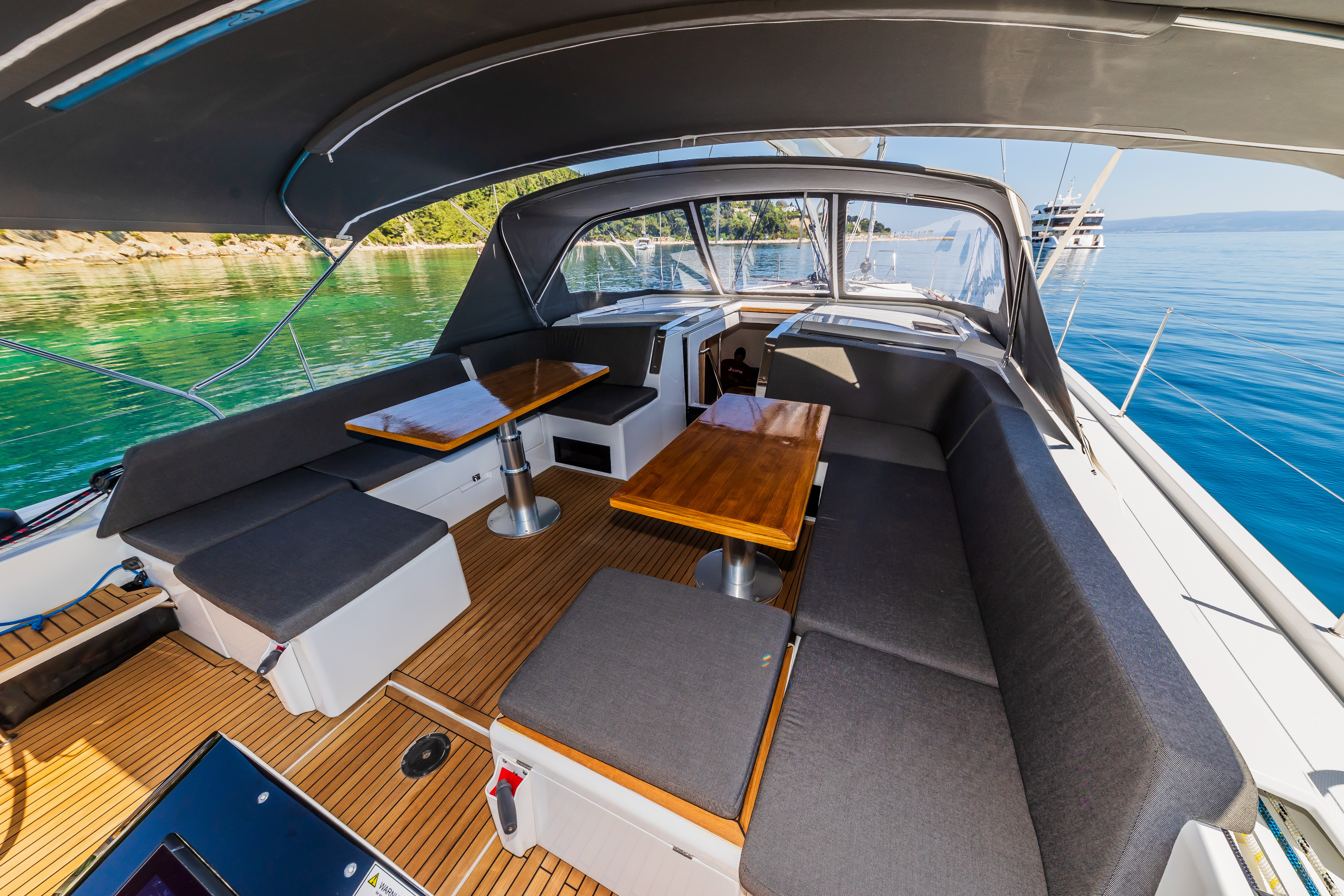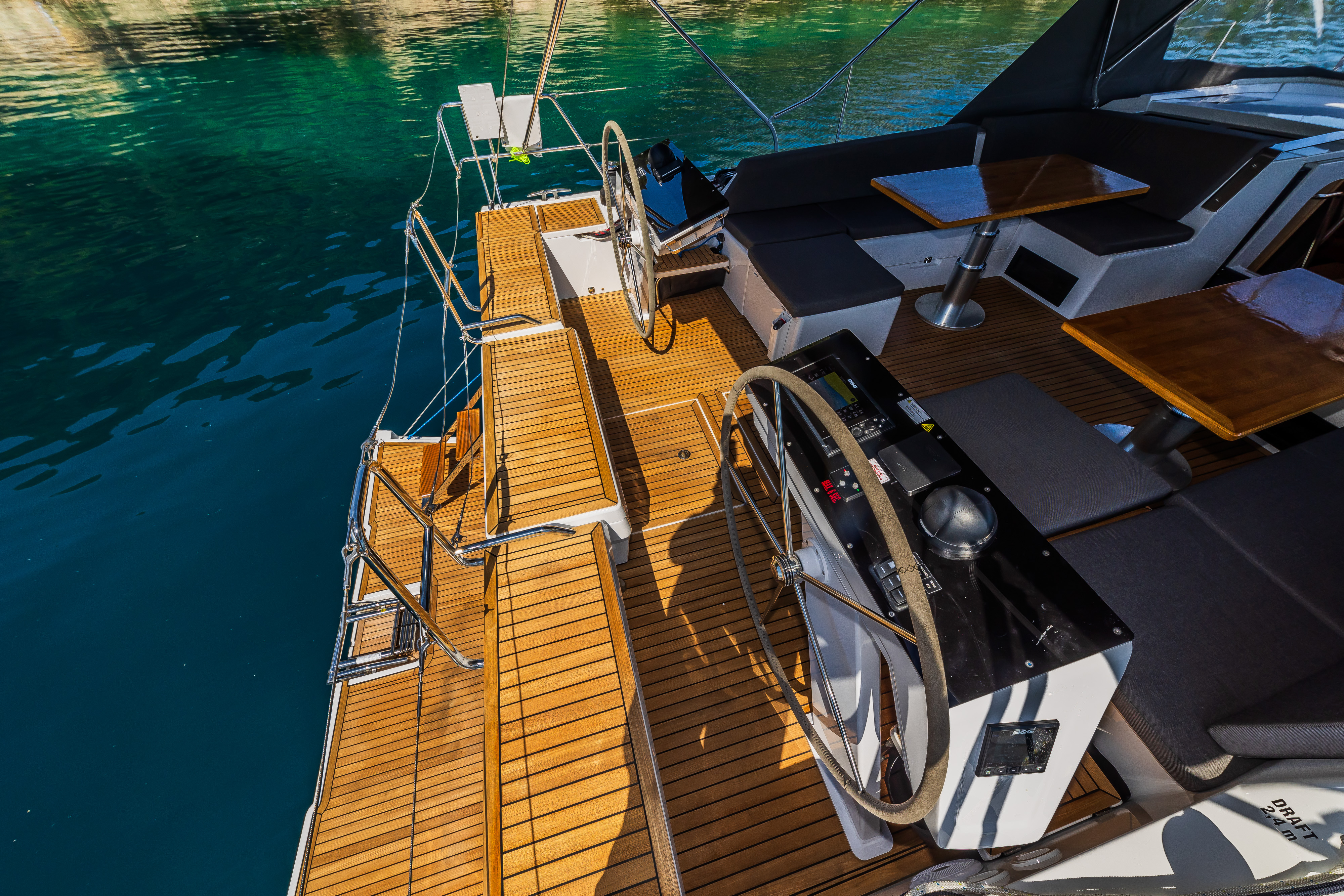 | Outside | Badeplattform, Biminitop, Cockpitdusche, Cockpitlautsprecher, Cockpitpolster, Cockpittisch, elektr. Großwinsch, Grill, Sprayhood, Teak im Cockpit, Wet Bar |