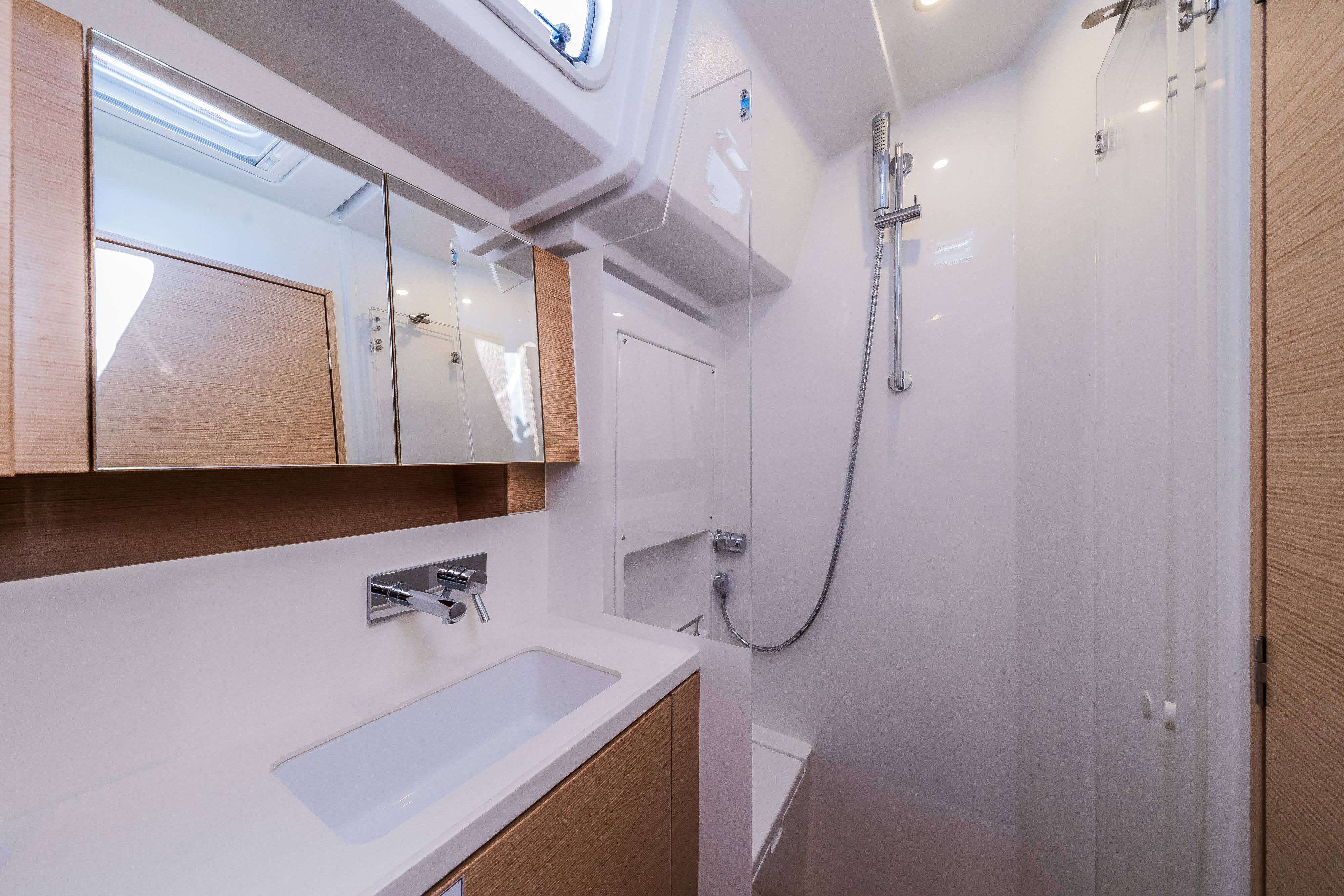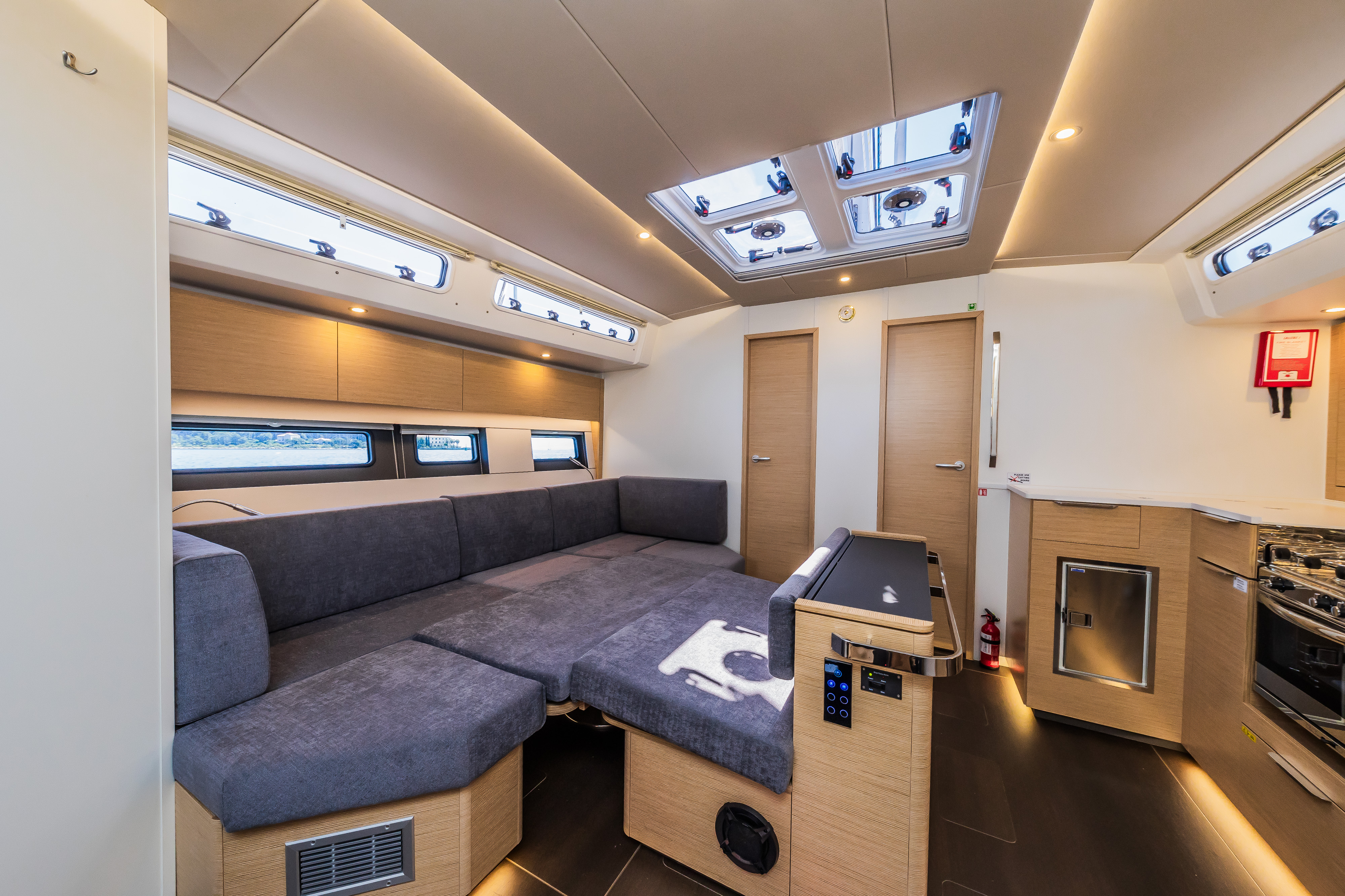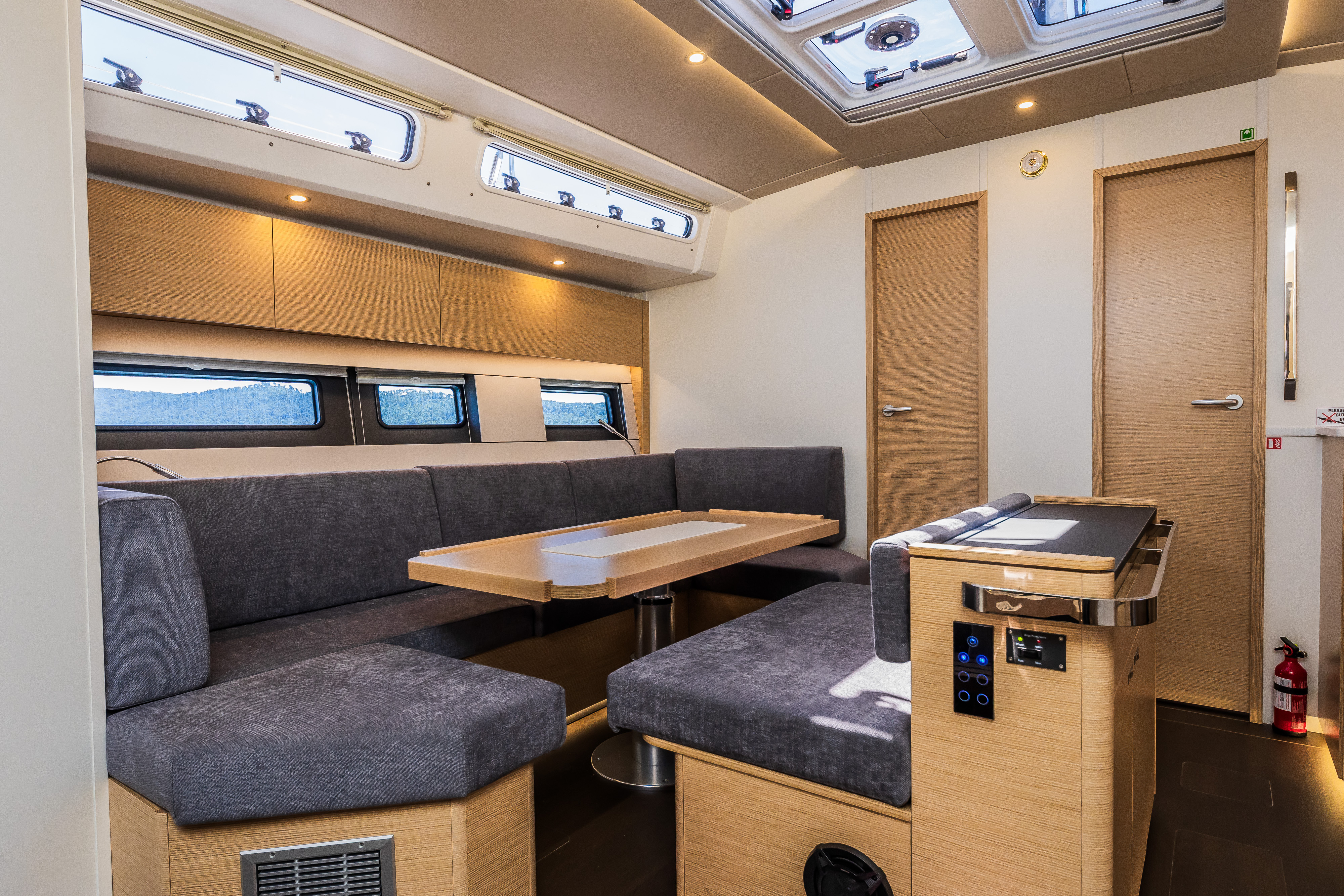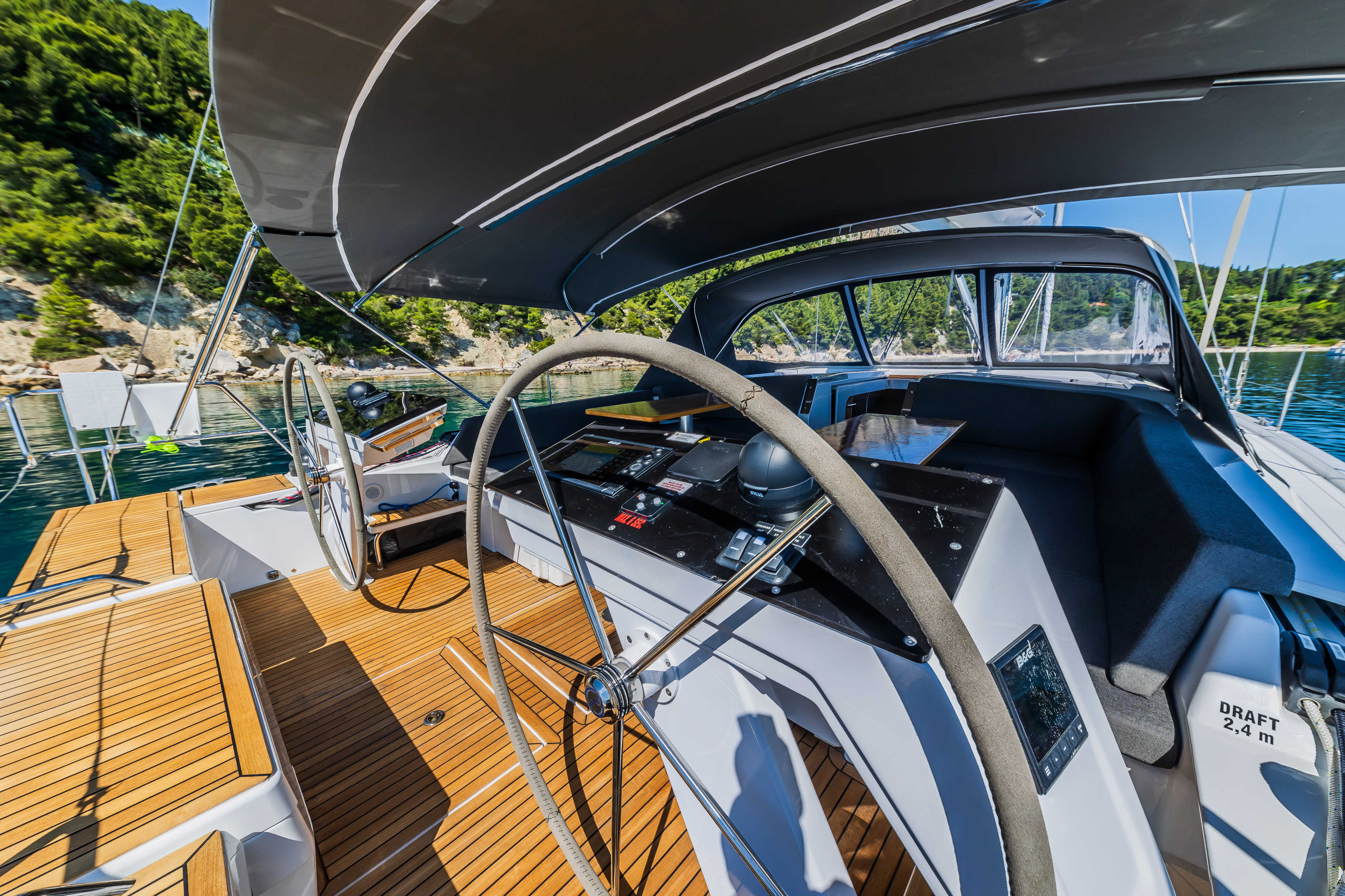 | Outside | Badeplattform, Biminitop, Cockpitdusche, Cockpitlautsprecher, Cockpitpolster, Cockpittisch, elektr. Großwinsch, Grill, Sprayhood, Teak im Cockpit, Wet Bar |