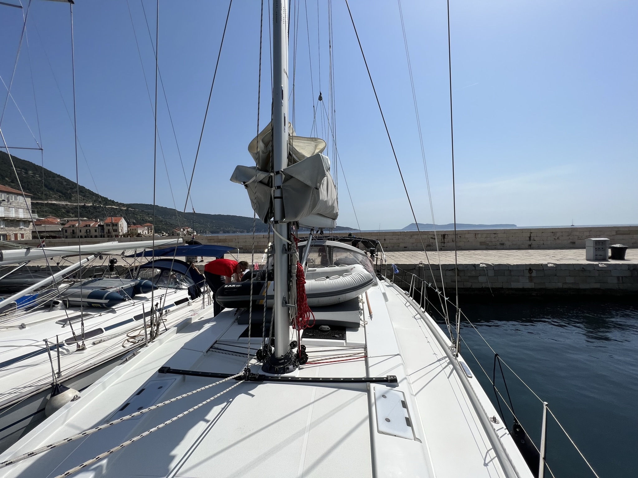 | Navigation | GPS mit Kartenplotter im Cockpit, Hafenhandbücher, Seekarten, Tridata (Log, Echolot, Windm.) |