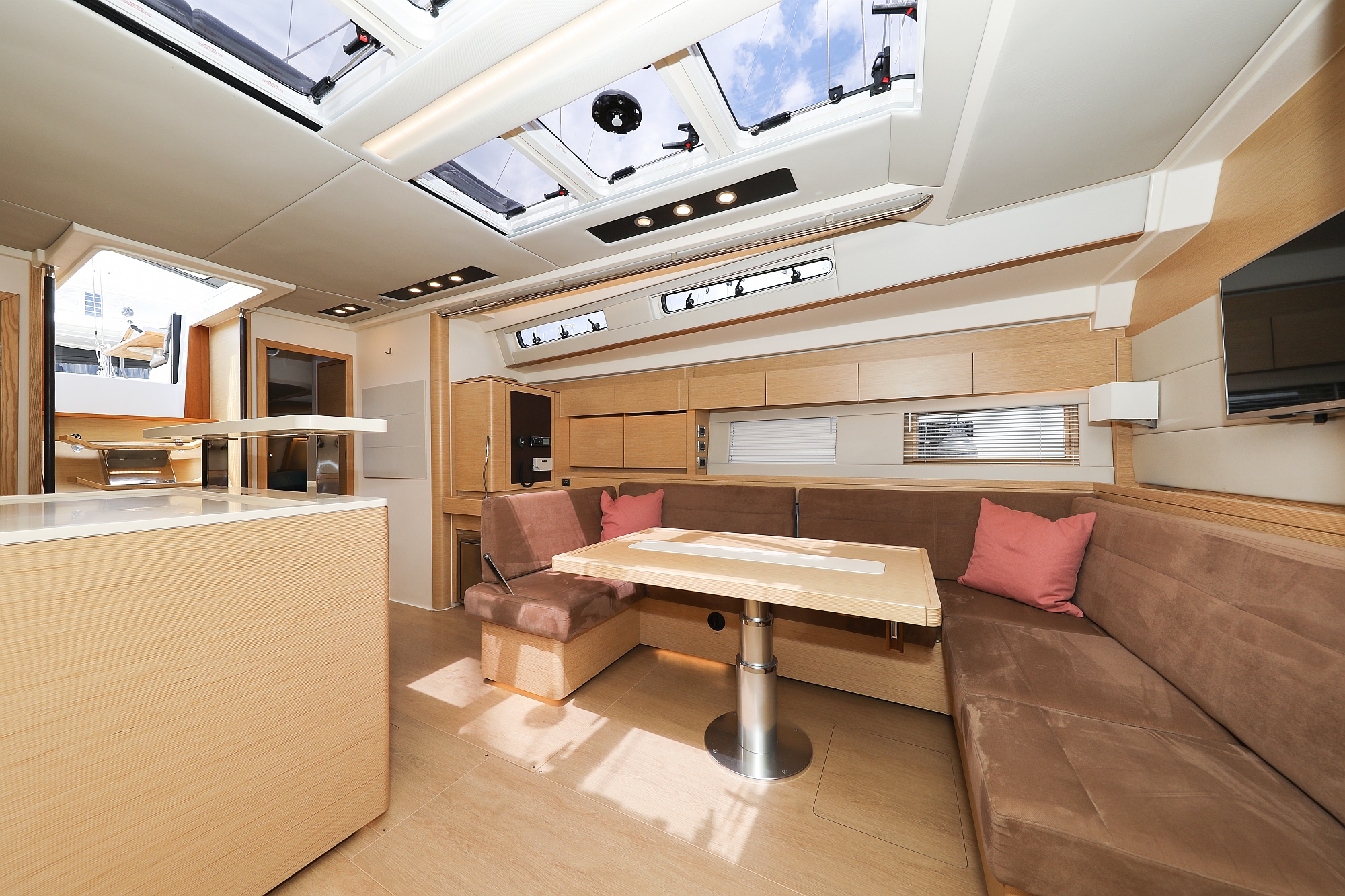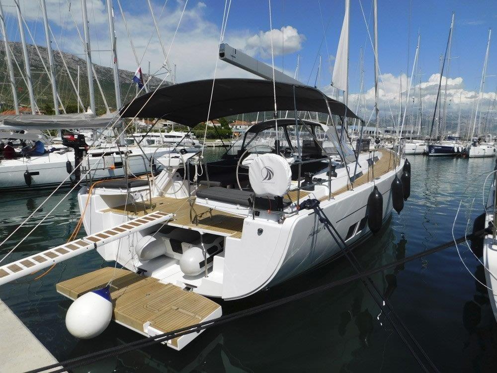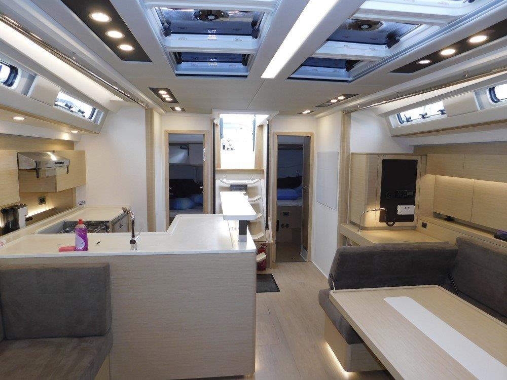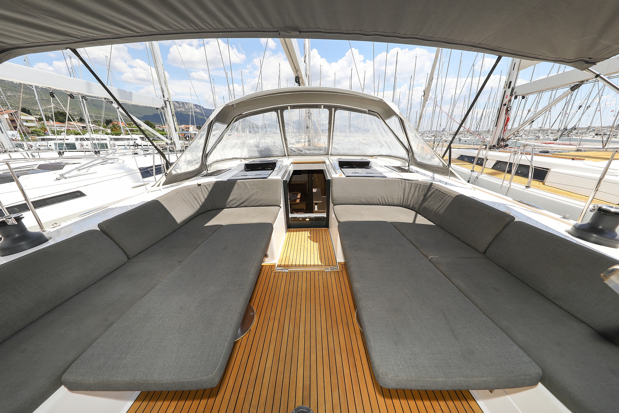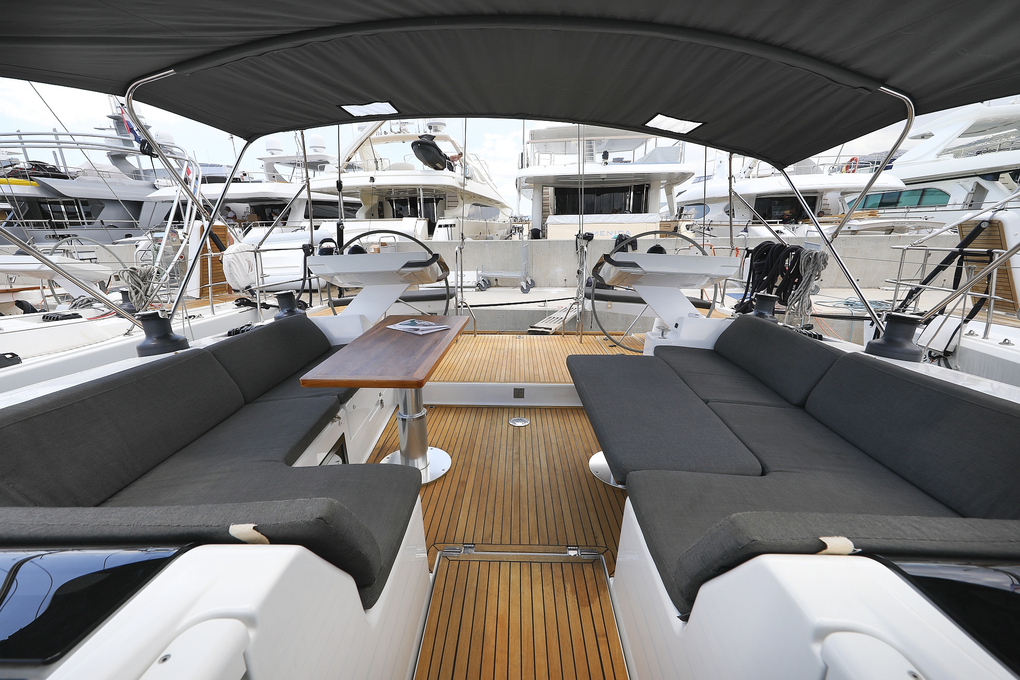 | Outside | Badeplattform (hydr.), Biminitop, Cockpitdusche, Cockpitlautsprecher, Cockpitpolster, Cockpittisch, Deckpolster, elektr. Ankerwinsch, elektr. Großwinsch, Gangway, Sprayhood, Teak im Cockpit, Teakdeck |
