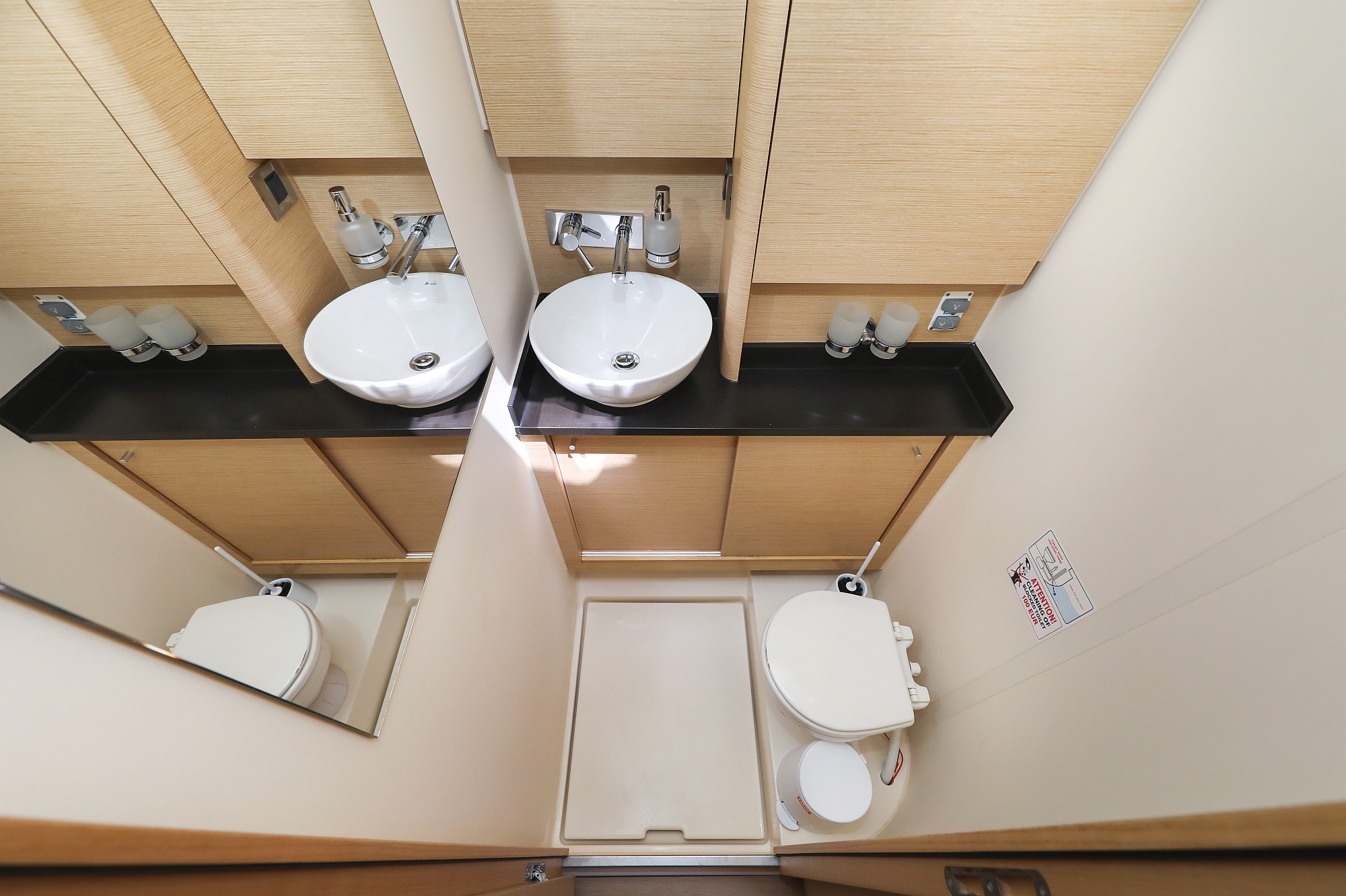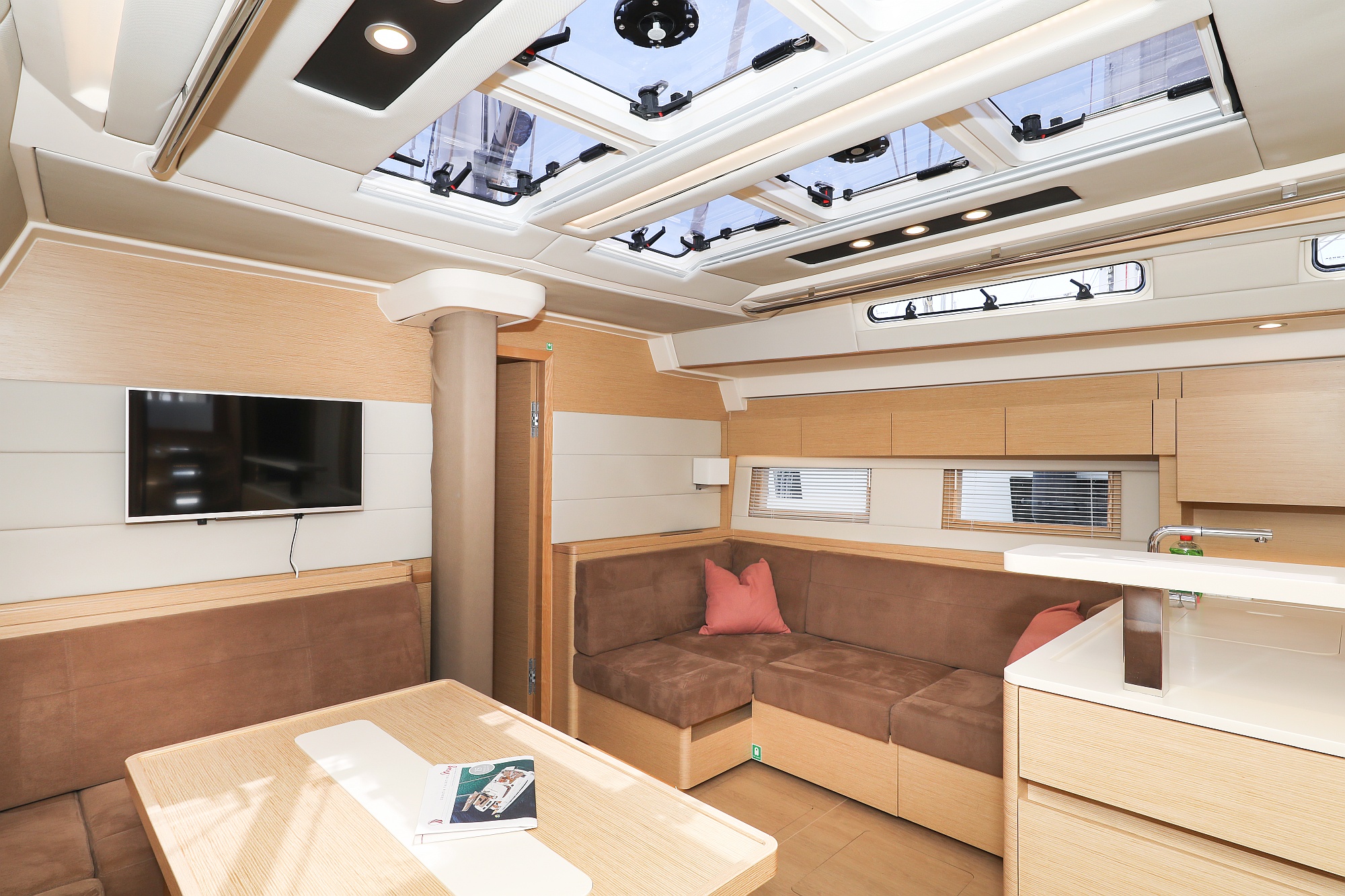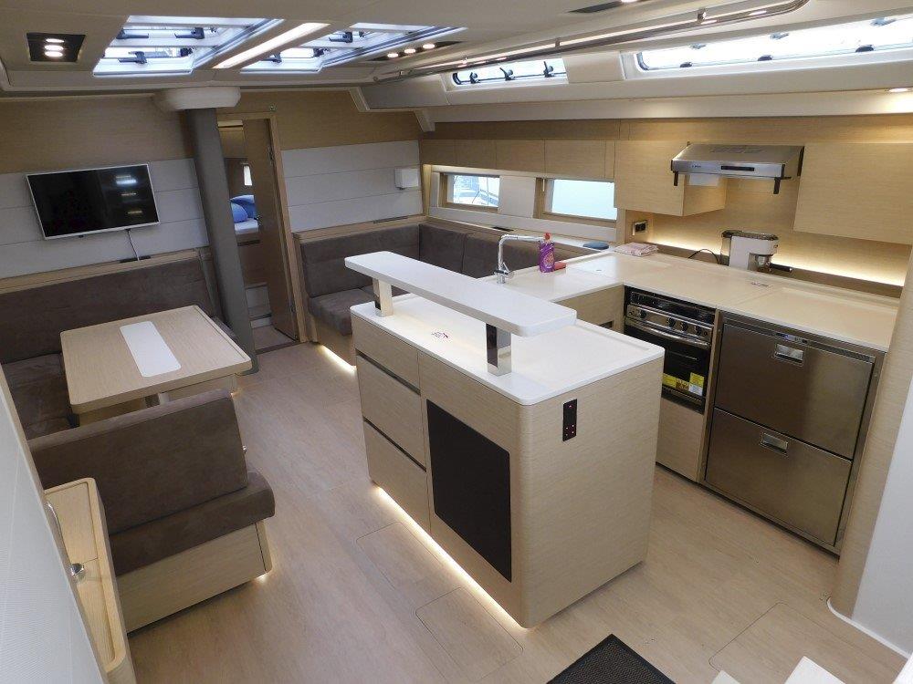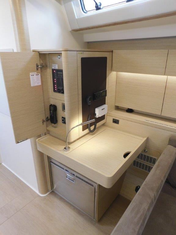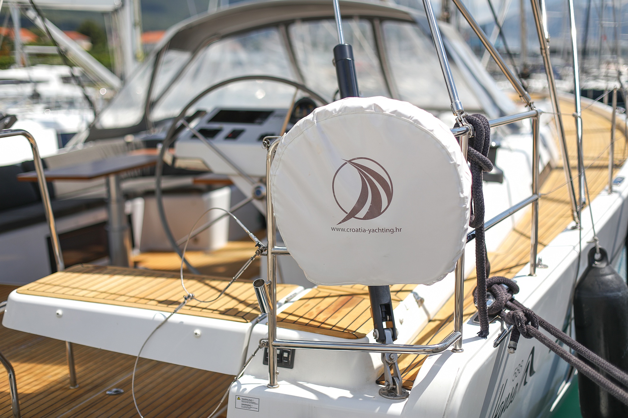 | Outside | Badeplattform (hydr.), Biminitop, Cockpitdusche, Cockpitlautsprecher, Cockpitpolster, Cockpittisch, Deckpolster, elektr. Ankerwinsch, elektr. Großwinsch, Gangway, Sprayhood, Teak im Cockpit, Teakdeck |