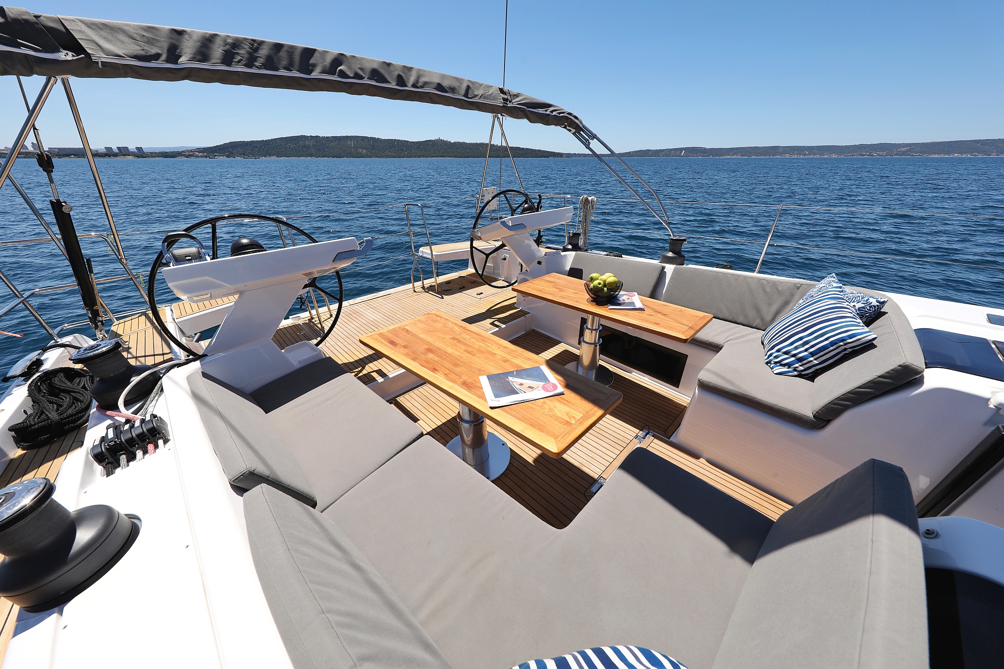 | Outside | Badeplattform, Biminitop, Cockpitdusche, Cockpitlautsprecher, Cockpitpolster, Cockpittisch absenkbar, Deckbeleuchtung, Deckpolster, elektr. Ankerwinsch, elektr. Großwinsch, Faltpropeller, Sprayhood, Teak im Cockpit, Teakdeck, Unterwasserbeleuchtung |