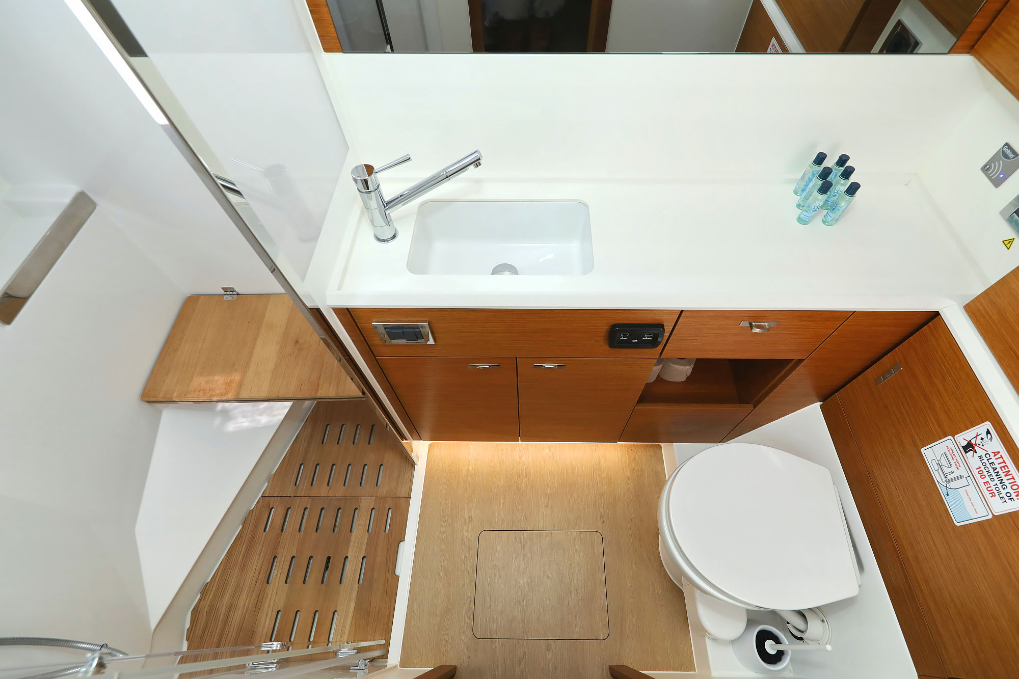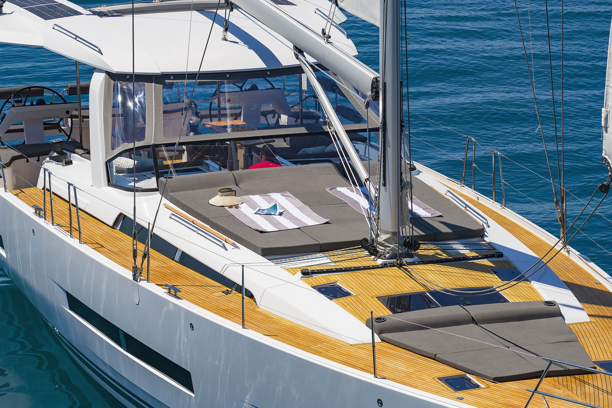 | Outside | Badeplattform elektr., Biminitop, Cockpitdusche, Cockpitlautsprecher, Cockpitpolster, Cockpittisch, Deckpolster, elektr. Großwinsch, Grill, Hardtop, hydraul. Gangway, Solaranlage, Sprayhood, Spülbecken im Cockpit, Teak im Cockpit, Teakdeck, Unterwasserbeleuchtung |