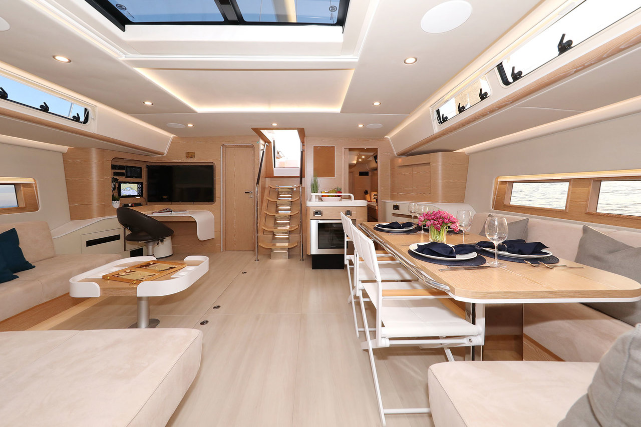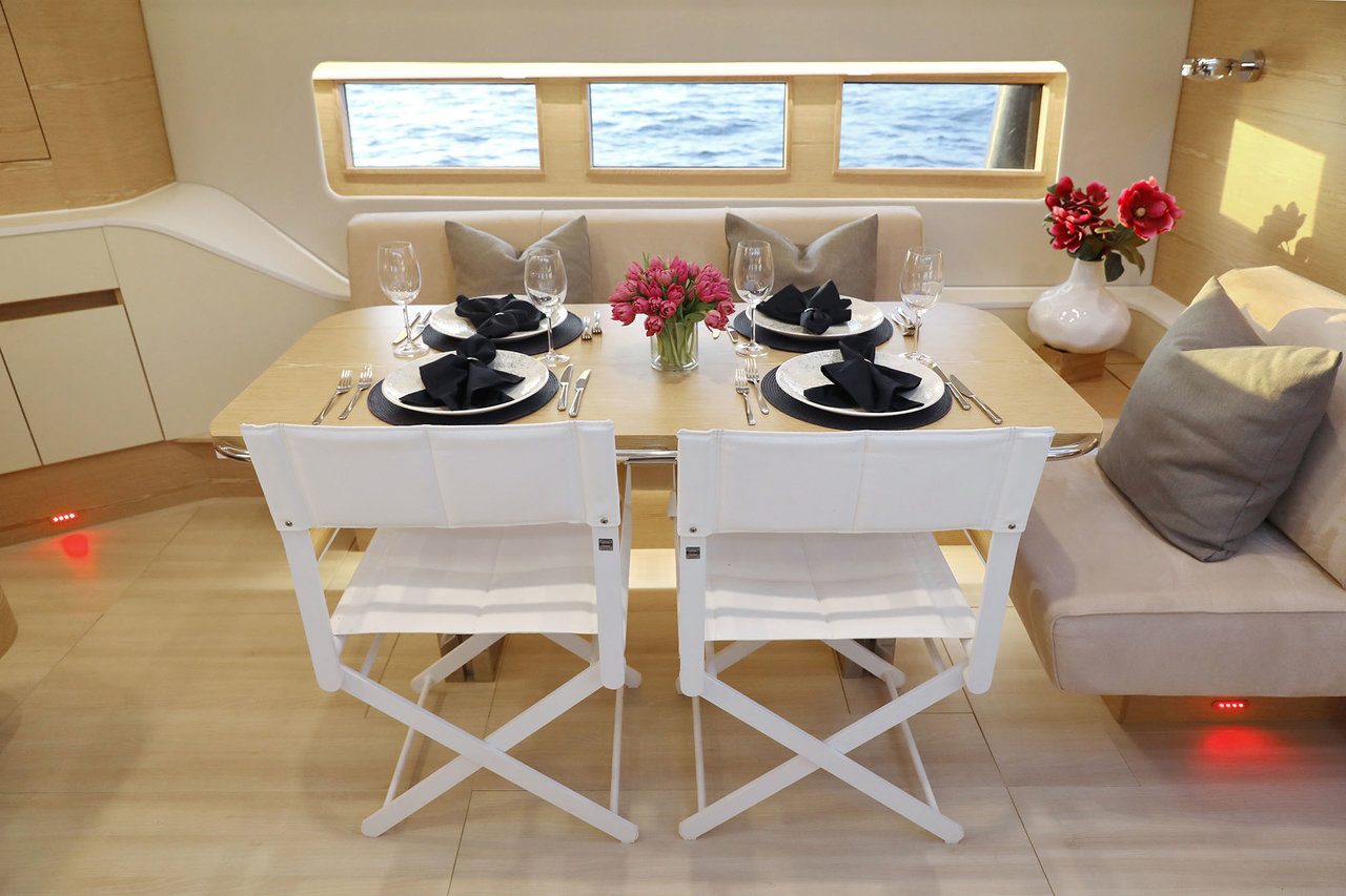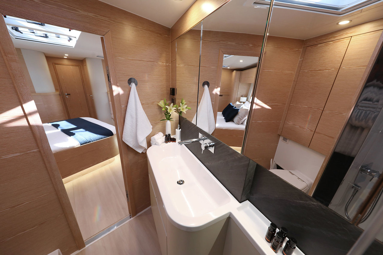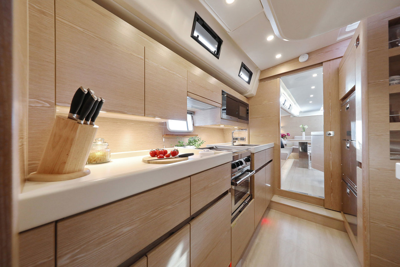 | Inside | Backofen, Gasherd, Gefrierschrank, Generator, Geschirrspüler, Heizung, Inverter 12V/220V, Klimaanlage (ohne Landstrombedarf), Kühlschrank, Nespresso-Maschine, Pantryausstattung, Satelliten-TV, Trockner, TV, Waschmaschine, Watermaker |