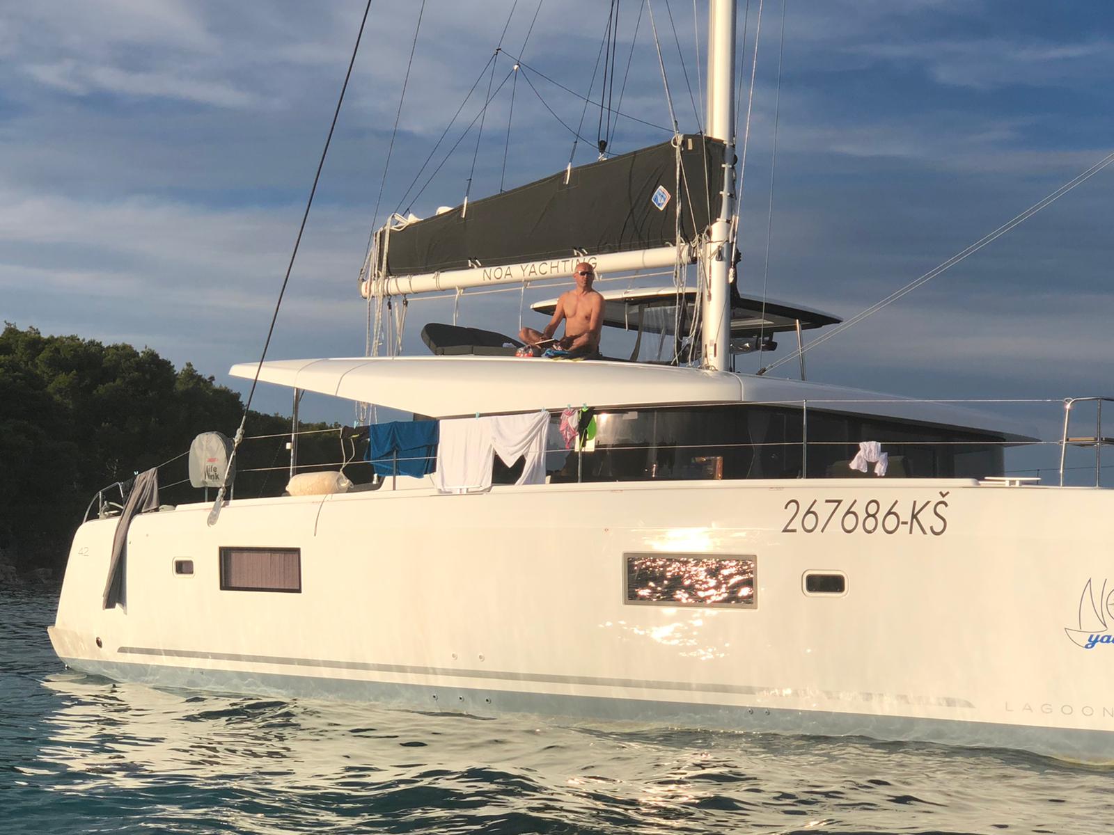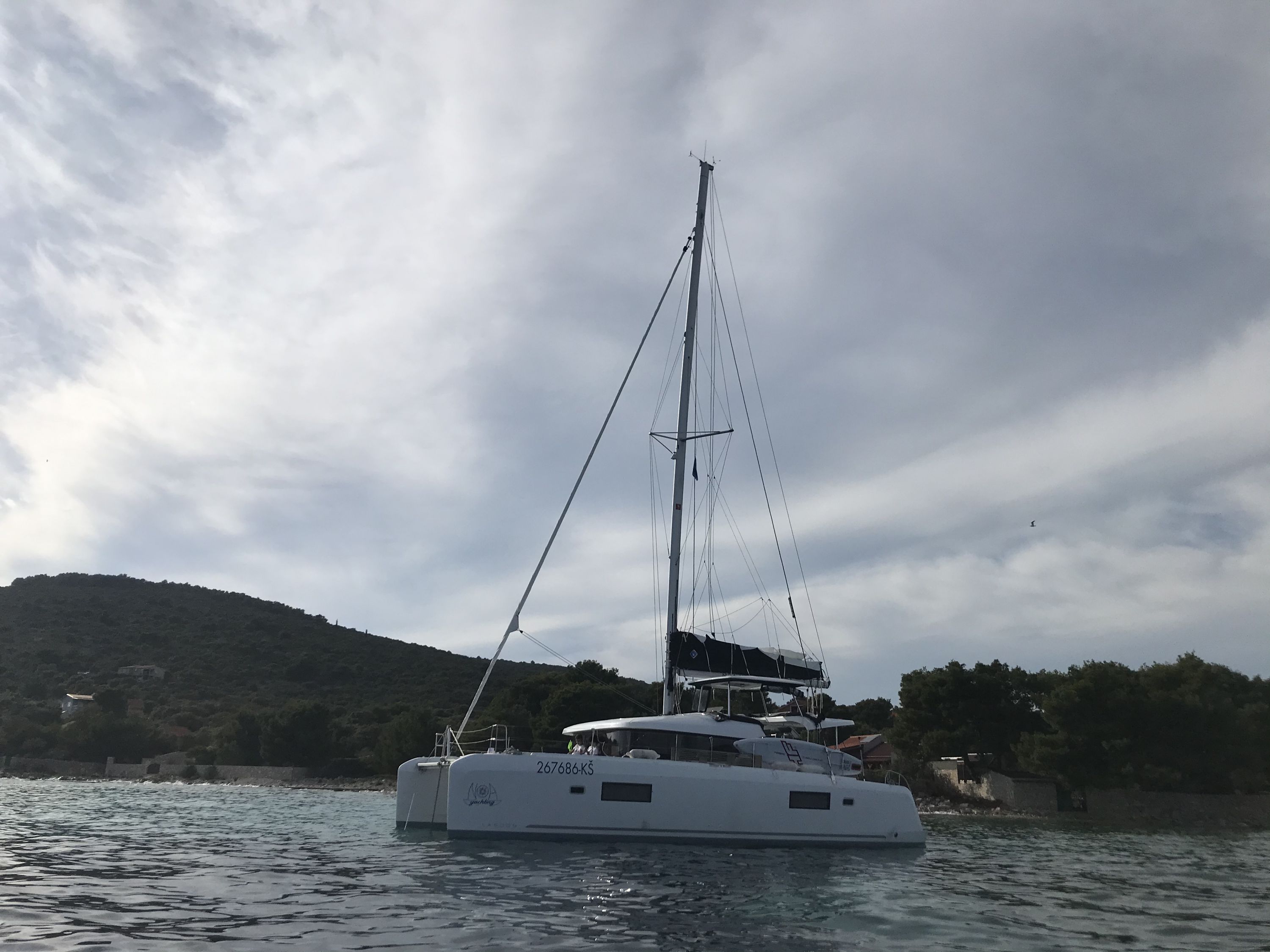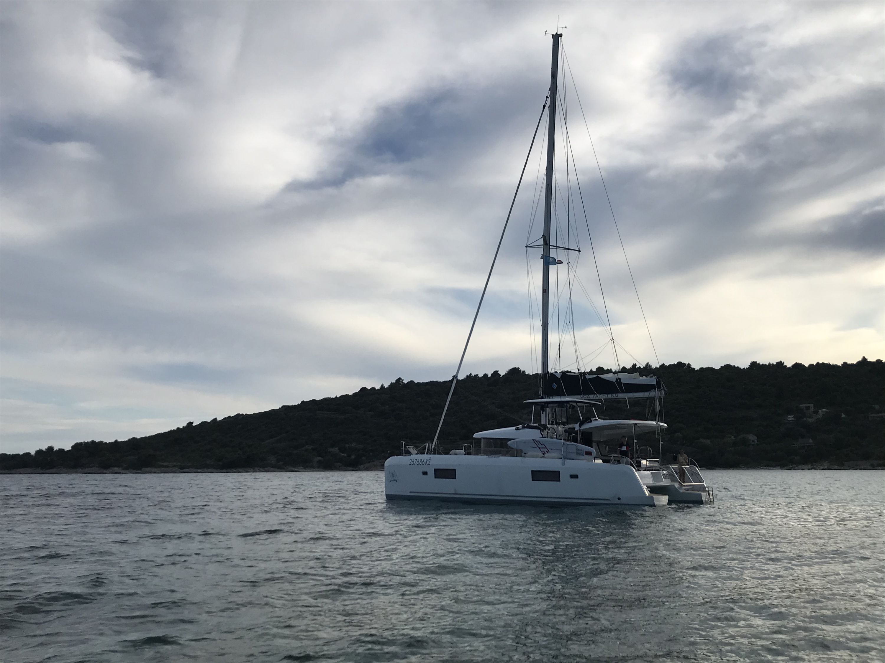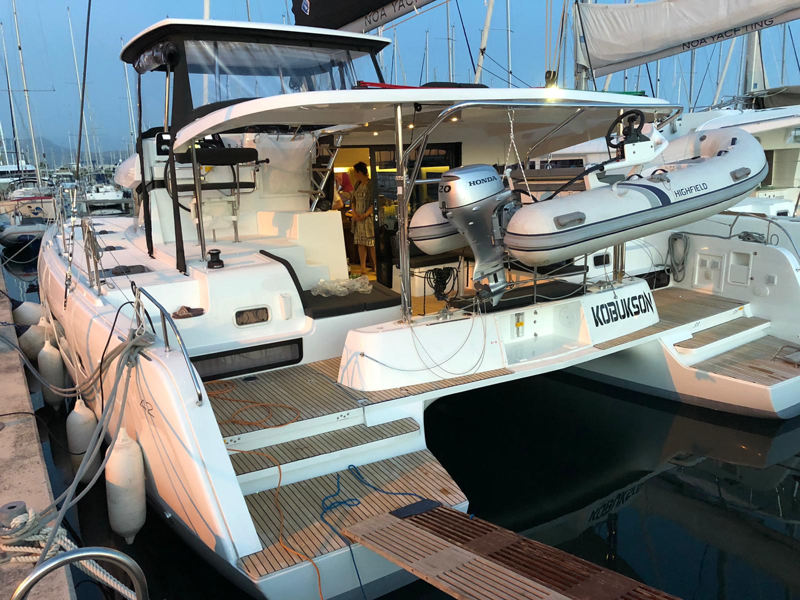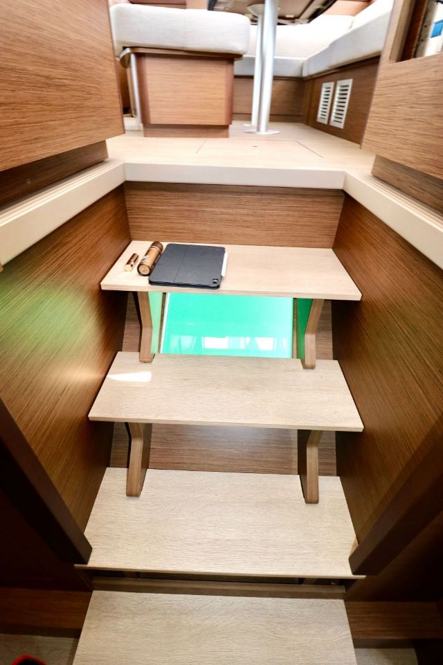 | Outside | 220 V-Landanschluss, Anker mit Kette, Biminitop, Cockpitdusche, Cockpitkühlschrank, Cockpitlautsprecher, Cockpitpolster, Cockpittisch, elektr. Ankerwinsch, elektr. Winsch, Fender, Festmacherleinen, Gangway, Teak im Cockpit |