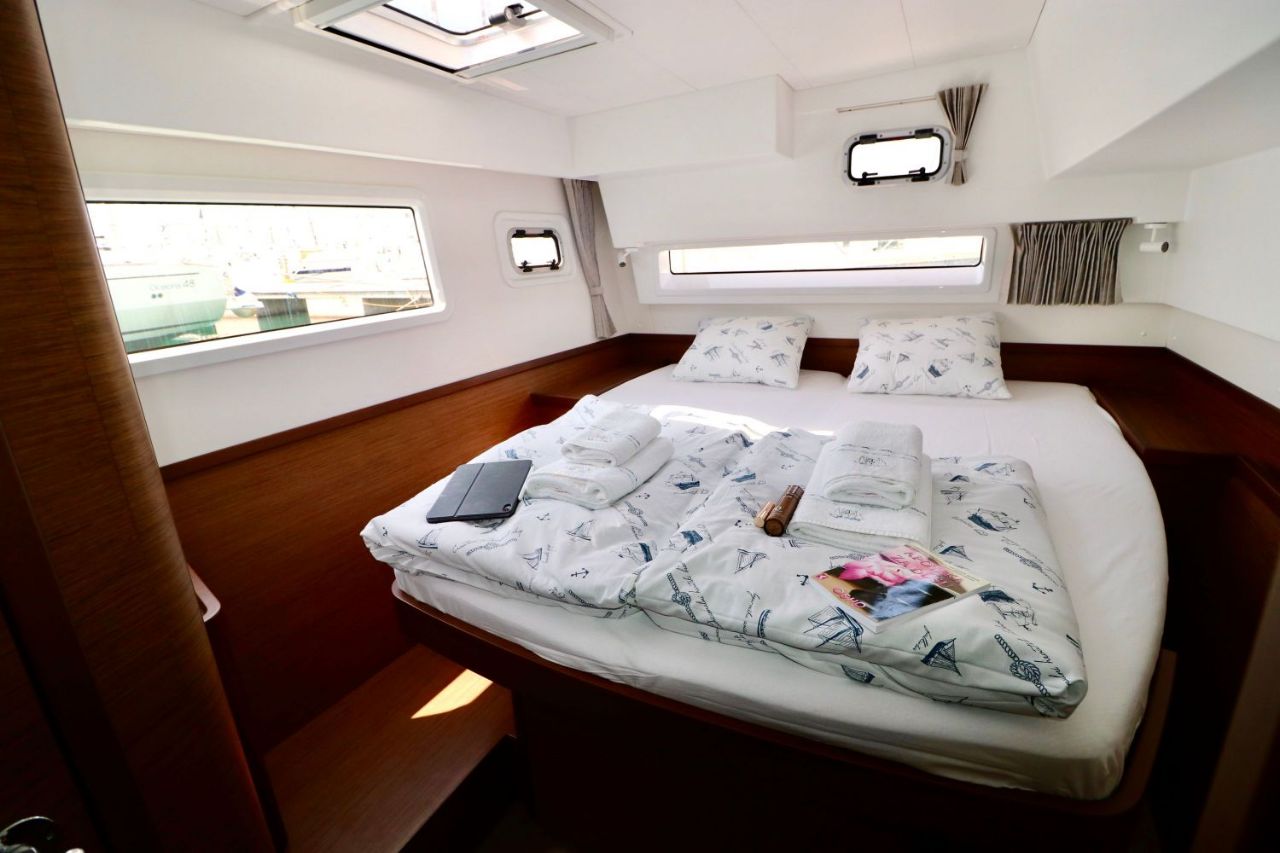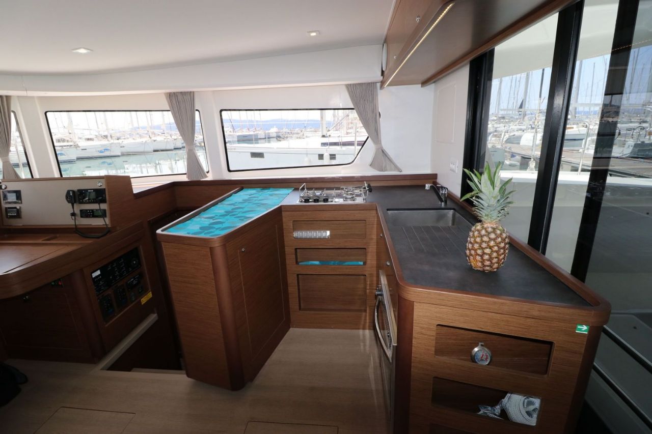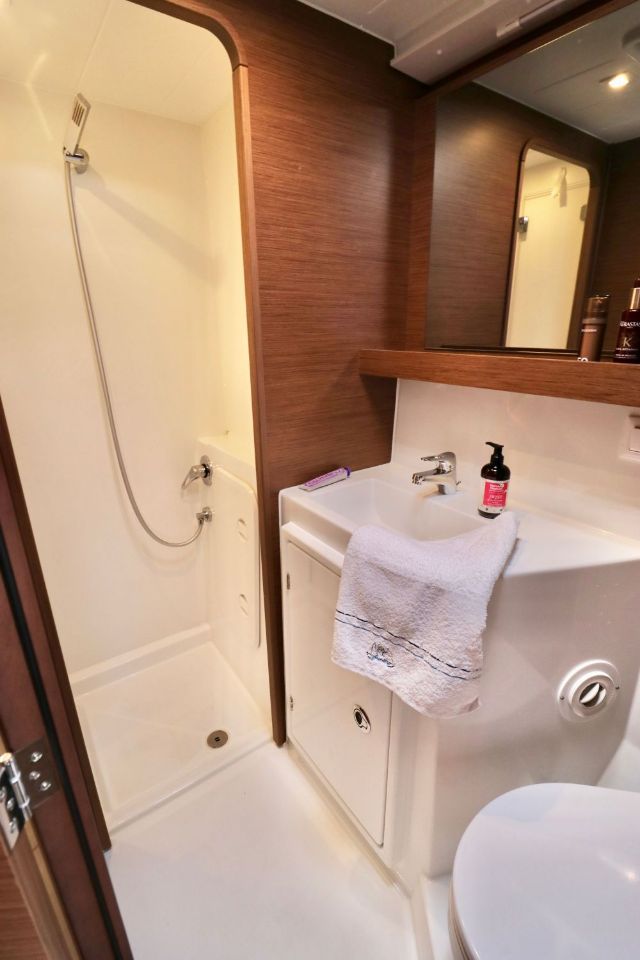 | Inside | Gefrierschrank, Generator, Inverter 12V/220V, Kaffeemaschine, Klimaanlage (ohne Landstrombedarf), Kühlschrank, Ladegerät, Lautsprecher im Salon, Pantryausstattung, Radio mit CD, AUX und USB, Salontisch absenkbar, USB Steckdose, Watermaker |