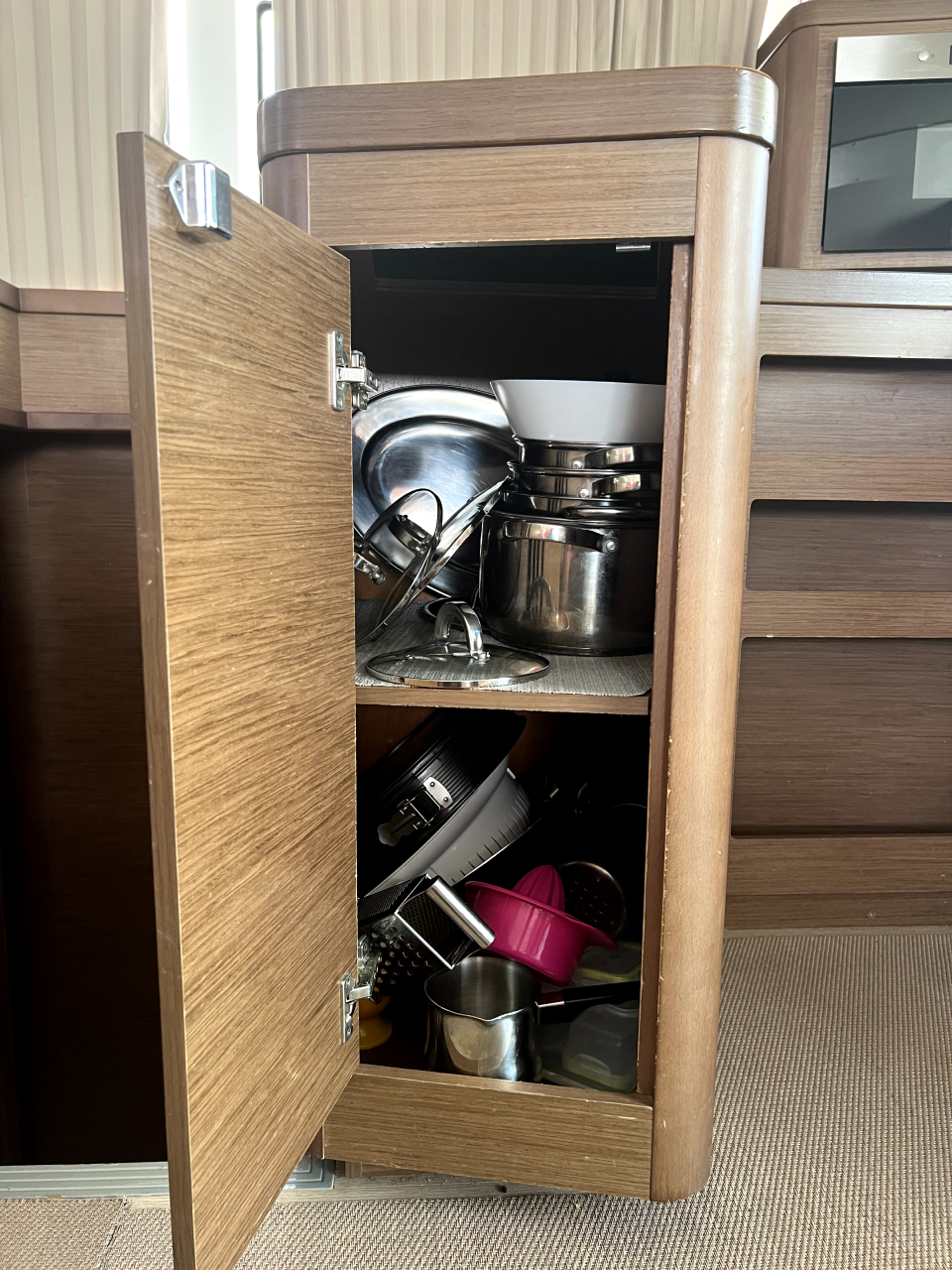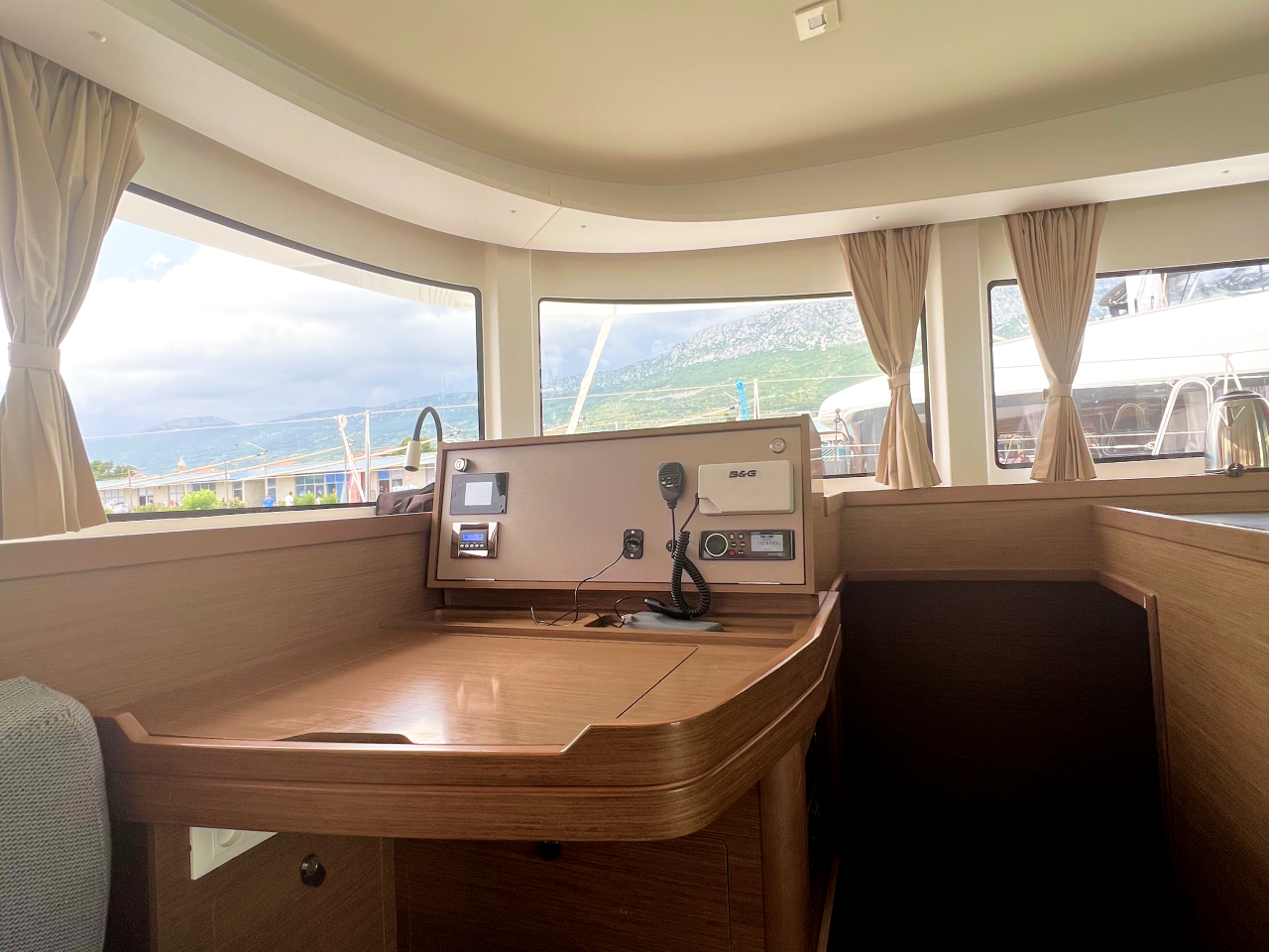 | Inside | 220V Steckdosen, Gasherd, Generator, Heizung, Inverter 12V/220V, Kaffeemaschine, Klimaanlage (ohne Landstrombedarf), Kühlschrank, Ladegerät, Pantryausstattung, Radio mit CD und MP3, Watermaker, WC (elektr.) |