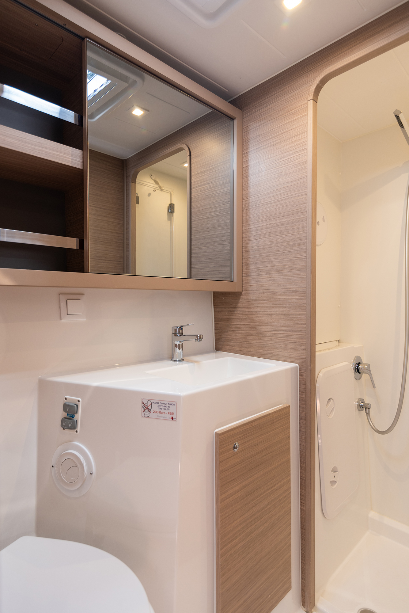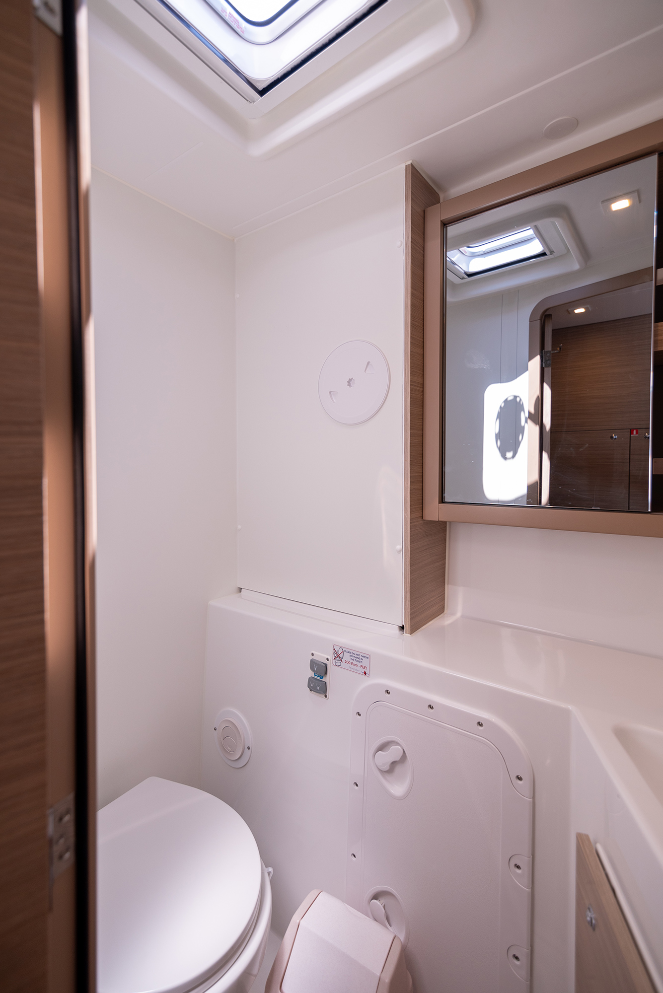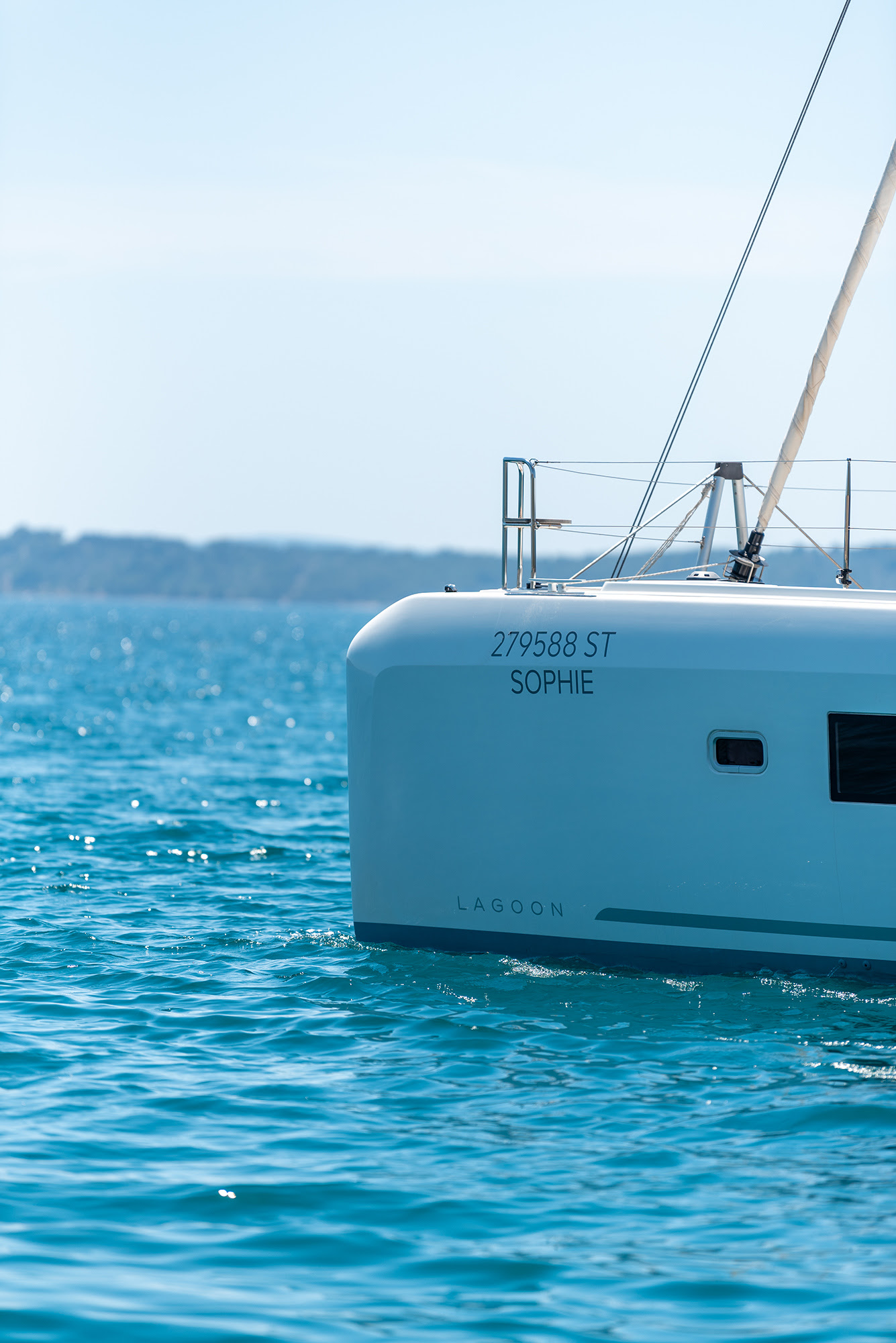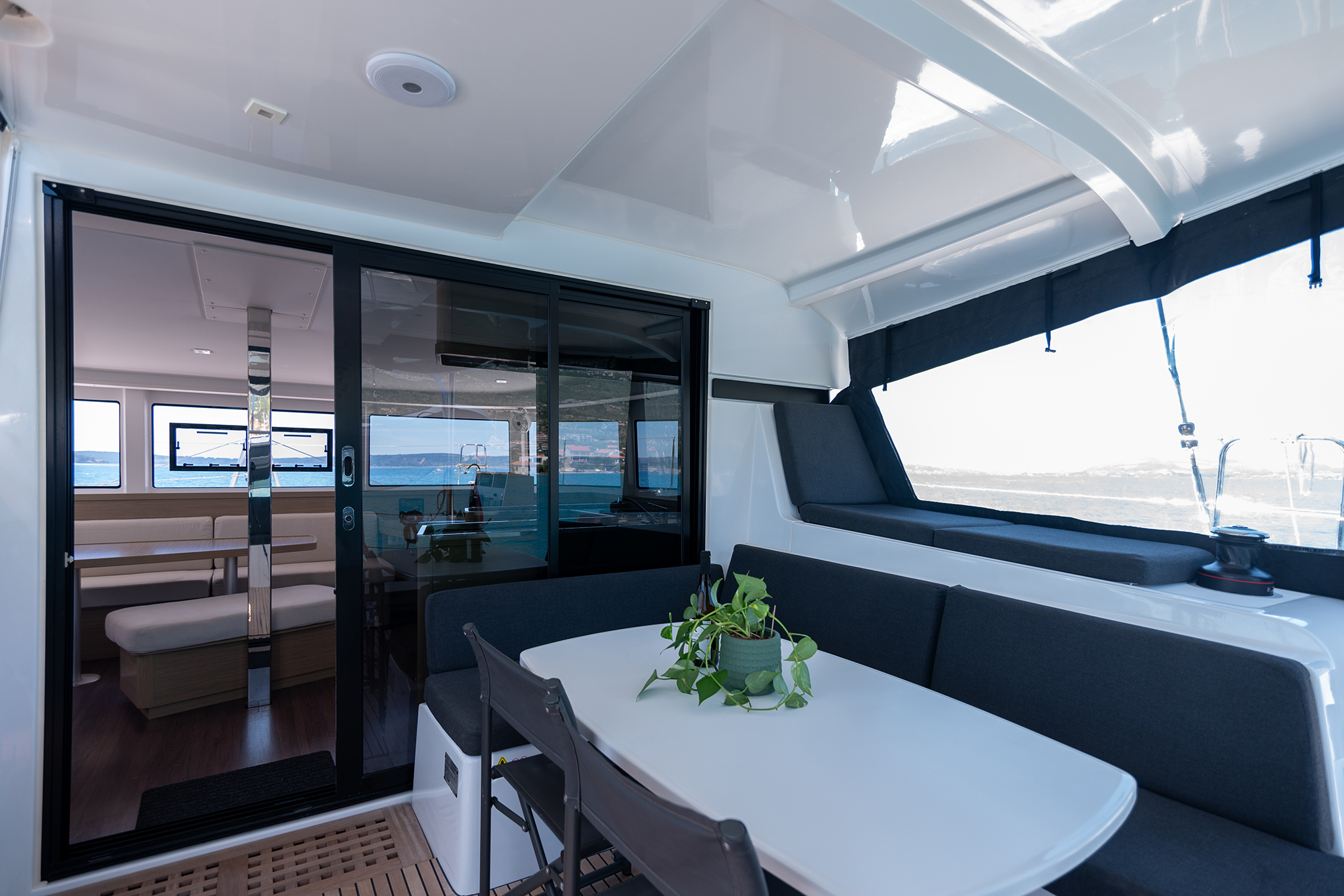 | Inside | 2. Kühlschrank, 220V Steckdosen, Bluetooth Player, Eiswürfelmaschine, Fön, FUSION Sound System, Generator, Inverter 12V/220V, Kaffeemaschine, Klimaanlage (ohne Landstrombedarf), Ladegerät, Pantryausstattung, Radio, TV, Ventilator, Ventilatoren in Salon und Kabinen, Wasserkocher, Watermaker |