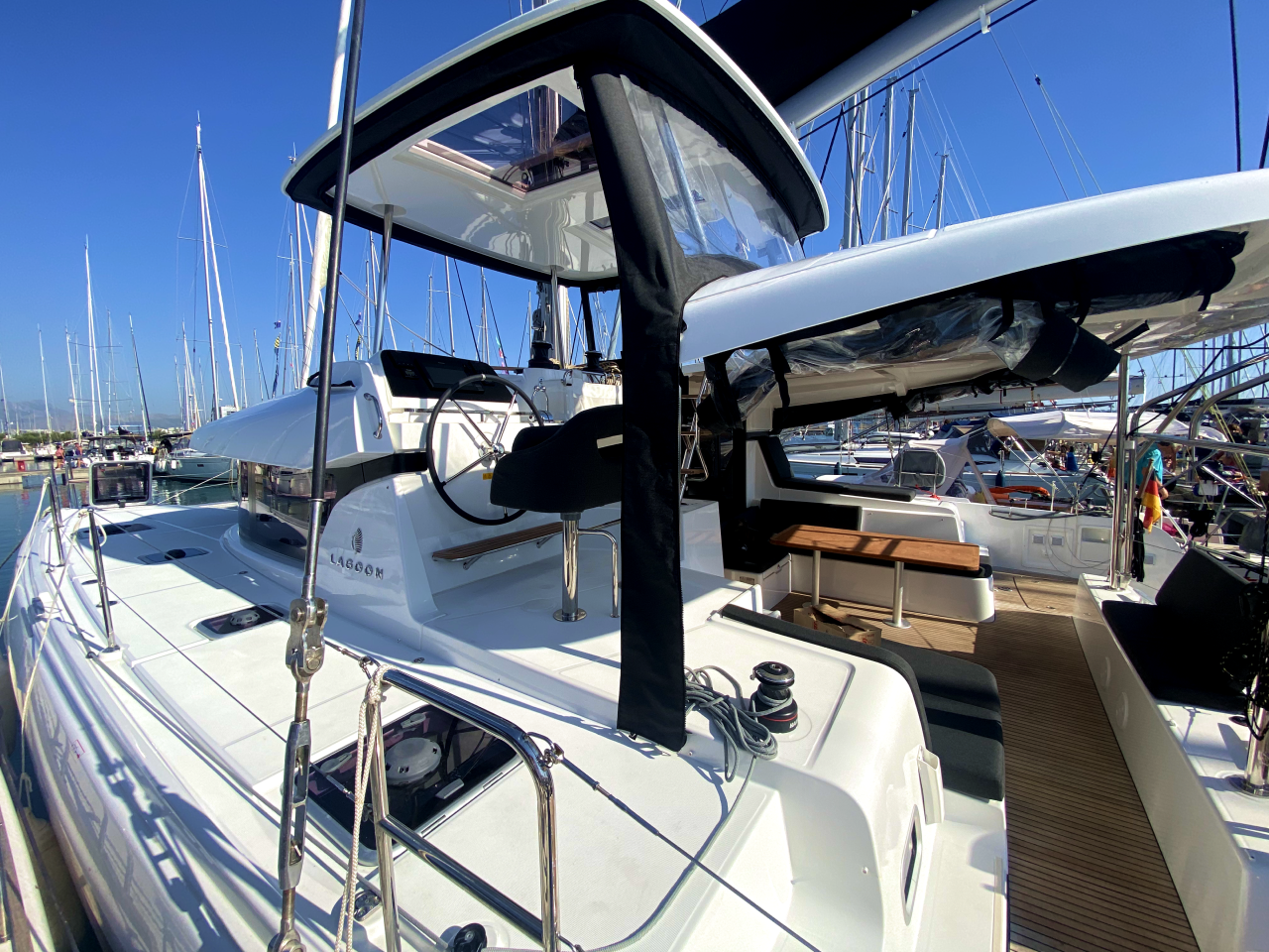 | Outside | 220 V-Landanschluss, Biminitop, Cockpitdusche, Cockpitkühlschrank, Cockpitlautsprecher, Cockpitpolster, Cockpittisch, elektr. Ankerwinsch, elektr. Winsch, Fender, Festmacherleinen, Gangway, Liegestühle, Sonnensegel, Teak im Cockpit, Unterwasserbeleuchtung |