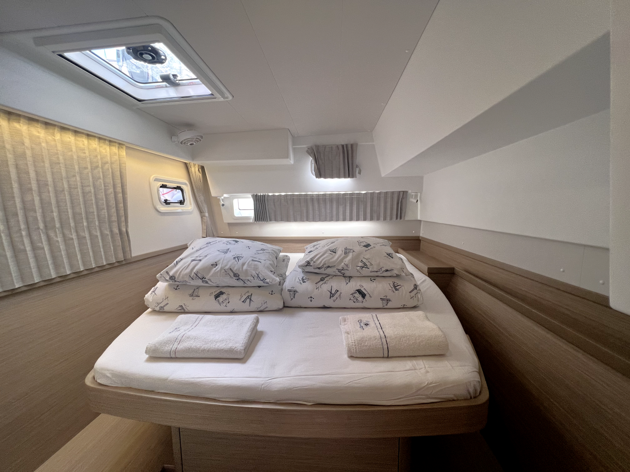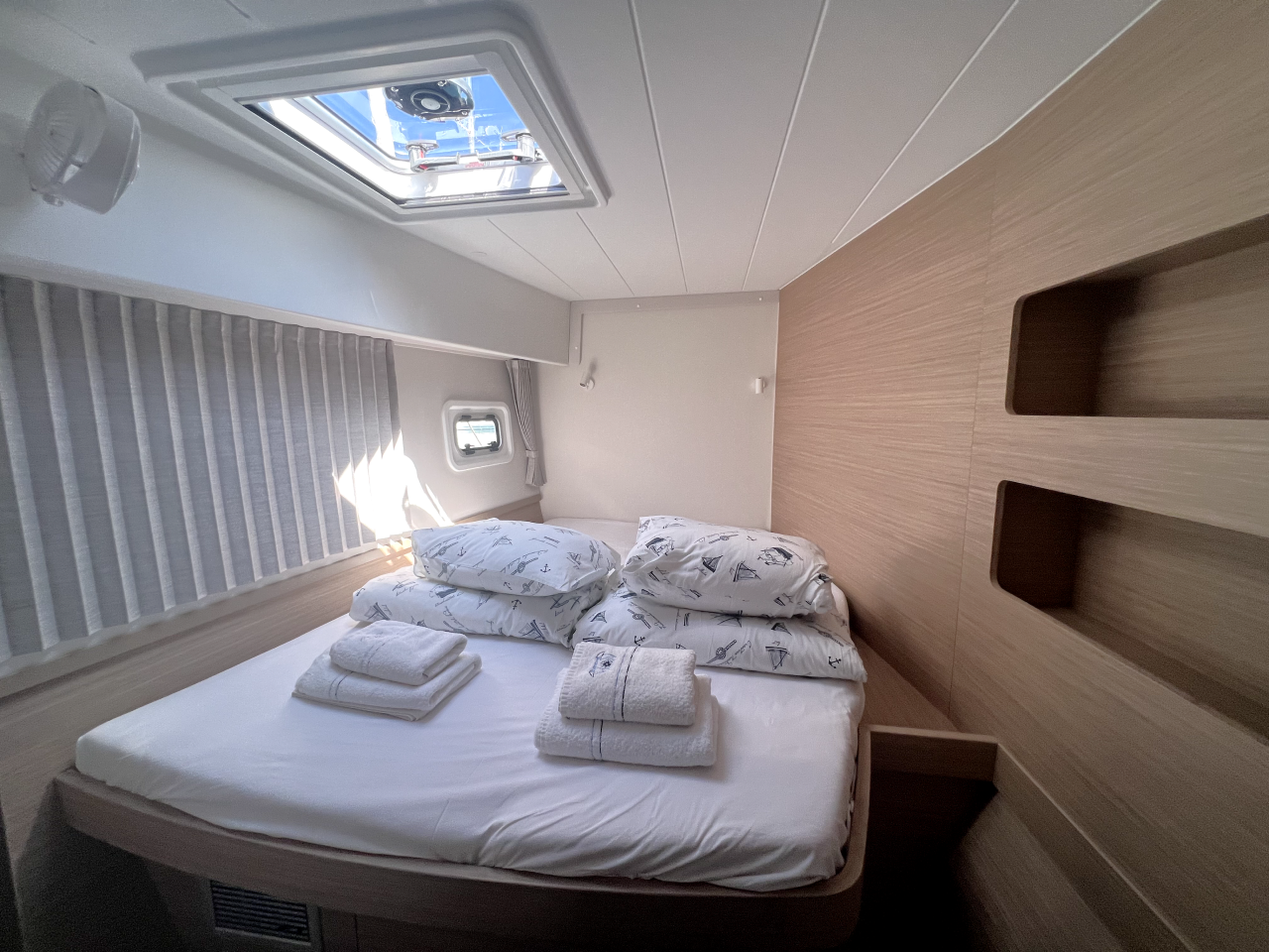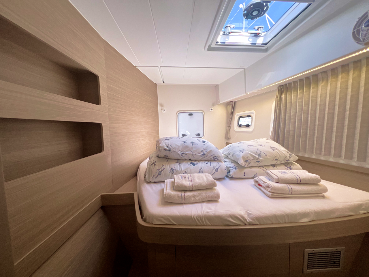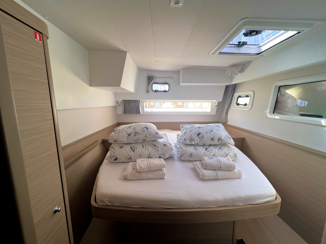 | Inside | Frischwasserpumpe, Gefrierschrank, Generator, Inverter 12V/220V, Kaffeemaschine, Klimaanlage (ohne Landstrombedarf), Ladegerät, Lautsprecher im Salon, Pantryausstattung, Radio mit Bluetooth, USB Steckdosen in den Kabinen, Ventilatoren in Salon und Kabinen, Watermaker, WC (elektr.) |