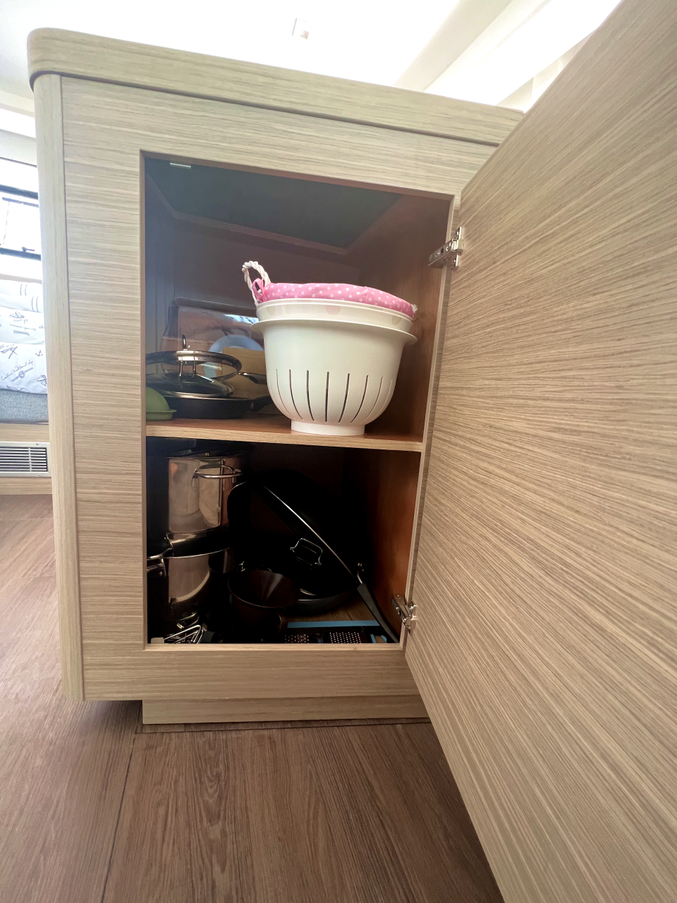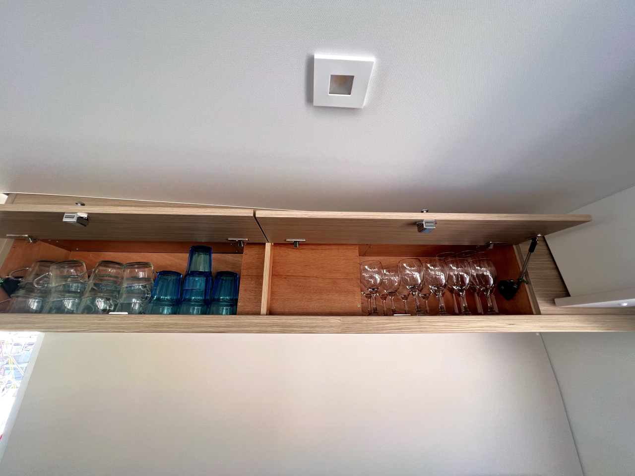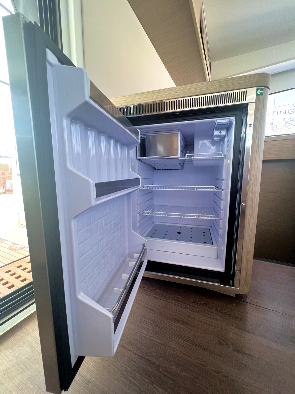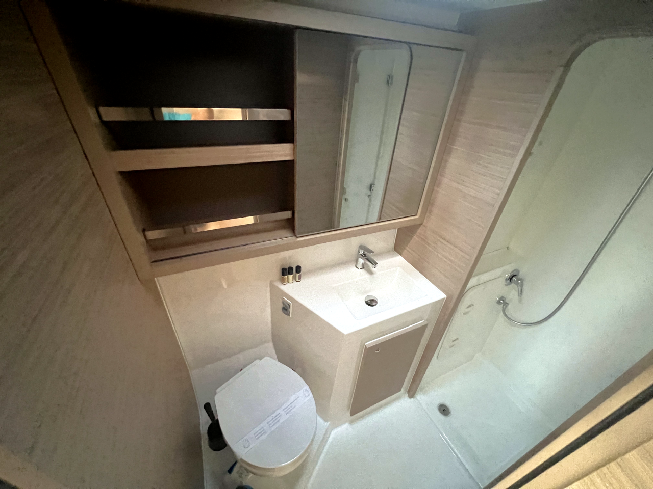 | Inside | Frischwasserpumpe, Gefrierschrank, Generator, Inverter 12V/220V, Kaffeemaschine, Klimaanlage (ohne Landstrombedarf), Ladegerät, Lautsprecher im Salon, Pantryausstattung, Radio mit Bluetooth, USB Steckdosen in den Kabinen, Ventilatoren in Salon und Kabinen, Watermaker, WC (elektr.) |