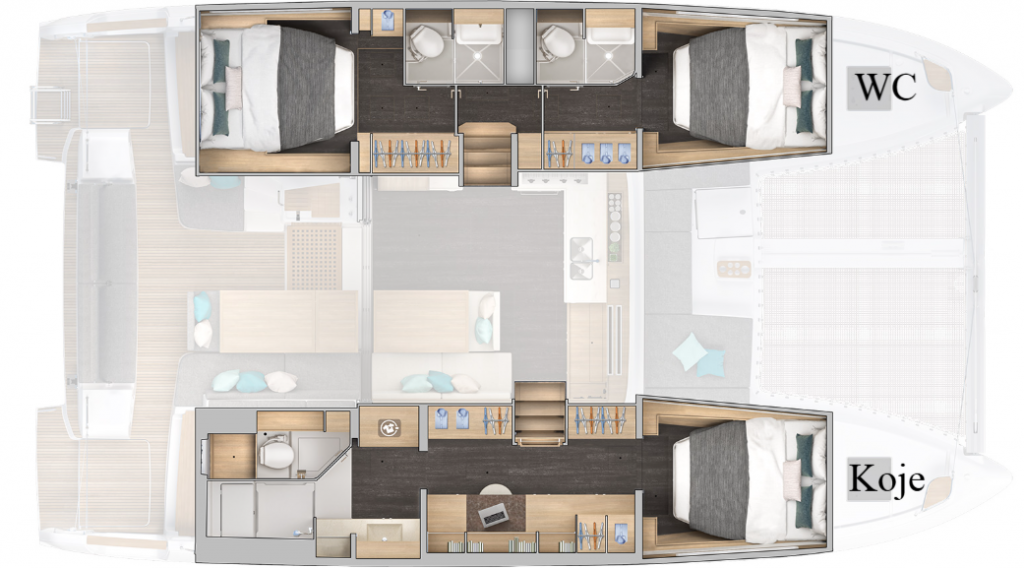 | Inside | 220V Steckdosen, Bluetooth Player, Eiswürfelmaschine, Gasherd mit Backofen, Generator, Heizung, Inverter 12V/220V, Kaffeemaschine, Klimaanlage (ohne Landstrombedarf), Ladegerät, Pantryausstattung, Radio, TV, Watermaker |