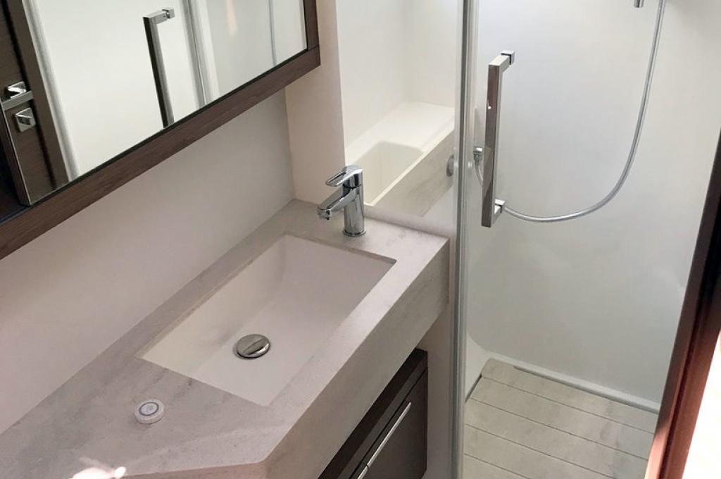 | Inside | 12V Steckdose, 220V Steckdosen, Backofen, Bluetooth Player, Eiswürfelmaschine, Fön, Gasherd mit Backofen, Gefrierschrank, Generator, Geschirrspüler, Inverter 12V/220V, Kaffeemaschine, Klimaanlage (ohne Landstrombedarf), Kühlschrank, Ladegerät, Mikrowelle, Pantryausstattung, Radio, Trichter, TV, USB Steckdose, Ventilator, Voltmeter, Waschmaschine, Wasserkocher, Watermaker |