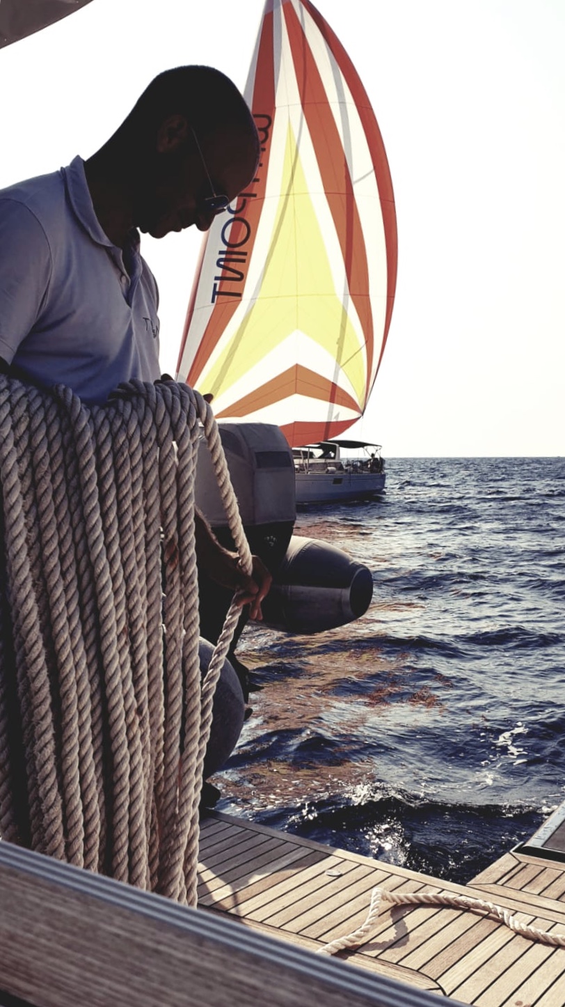| Sails | elektr. Fallwinsch, Fock, Lattengroßsegel, Lazy-Jack System, Lazybag, Rollgenua, Spi-Baum |