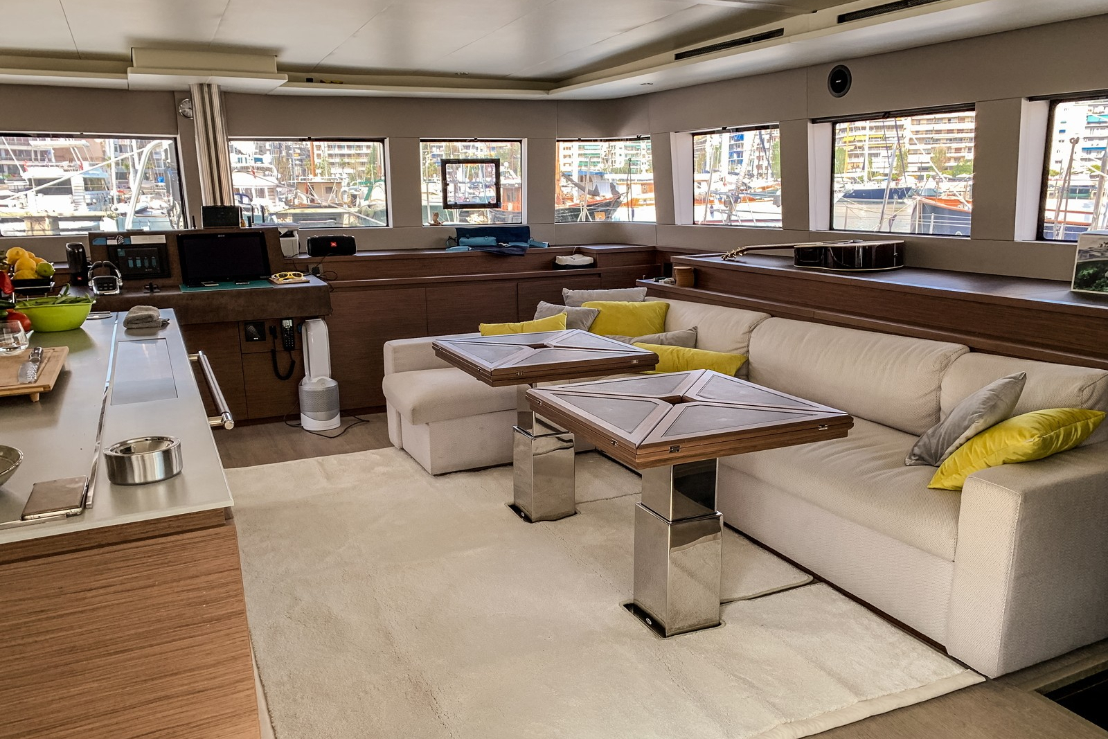 | Inside | Eiswürfelmaschine, Fäkalientank, Frischwasserpumpe, Gefrierschrank, Generator, Geschirrspüler, Heizung, Hi-Fi System, Inverter 12V/220V, Kaffeemaschine, Klimaanlage (ohne Landstrombedarf), Kühlschrank, Ladegerät, Lautsprecher im Salon, Pantryausstattung, Playstation, Radio mit MP3 , Radio mit USB und Bluetooth, Waschmaschine, Watermaker, WC (elektr.) |
