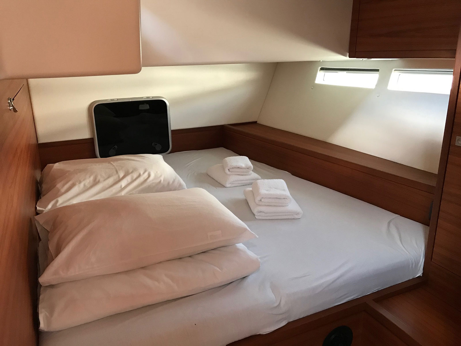 12V Steckdose, 220V Steckdosen, Backofen, Bluetooth Player, DVD-Player, Eiswürfelmaschine, FUSION Sound System, Gefrierschrank, Generator, Heizung, Inverter 12V/220V, Kaffeemaschine, Klimaanlage (ohne Landstrombedarf), Kühlschrank, Ladegerät, Salontisch absenkbar, USB Steckdose, Ventilator, Voltmeter, Wasserkocher, WC (elektr.) |