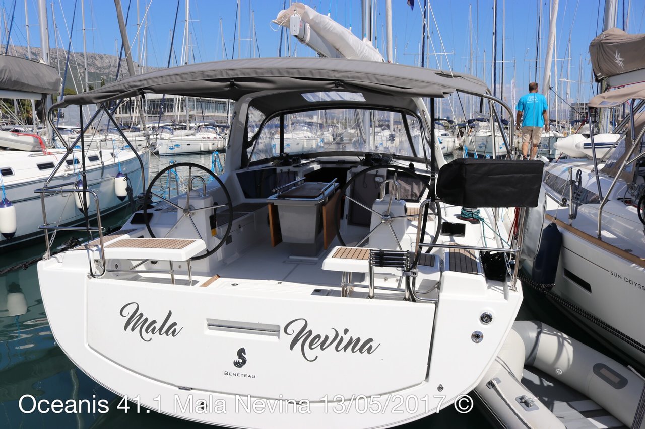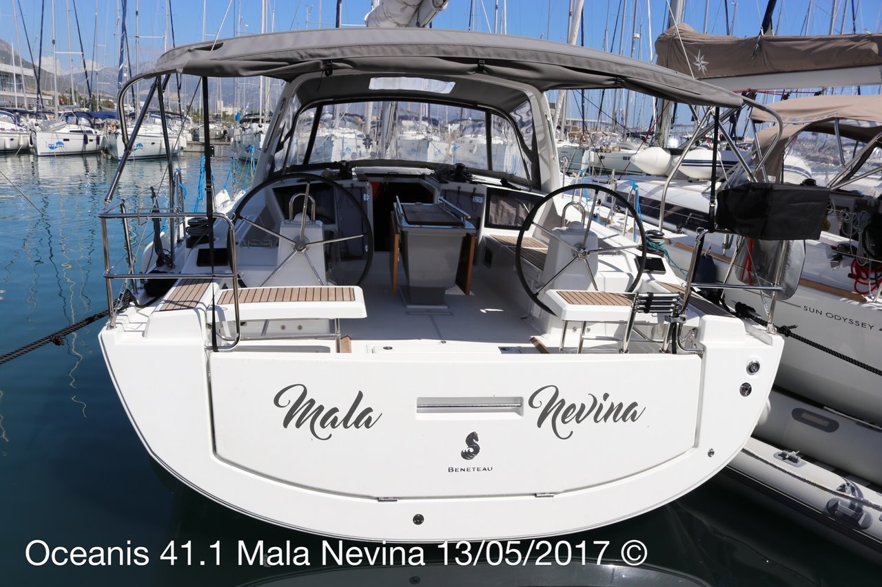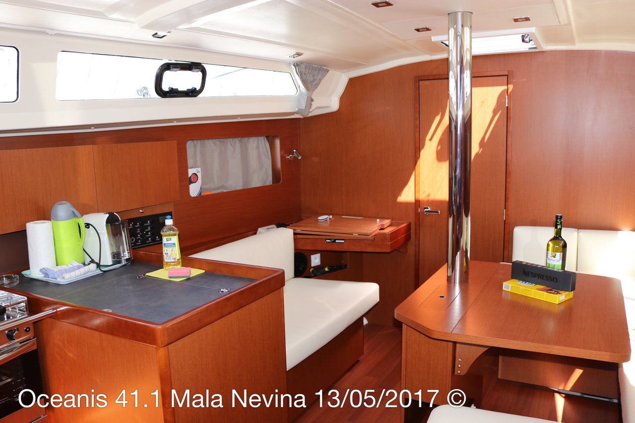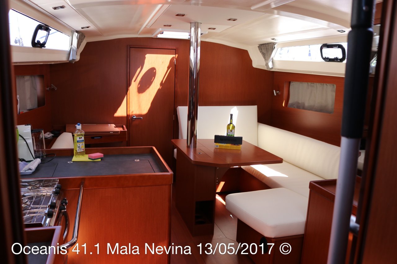 | Outside | 12 V-Anschluss, 220 V-Landanschluss, Anker mit Kette, Biminitop, Cockpitdusche, Cockpitlautsprecher, Cockpitpolster, Cockpittisch, Deckbürste, Dieselkanister , elektr. Ankerwinsch, elektr. Winsch, Fender, Festmacherleinen, Gangway, Kugelfender, Kunststoff-Eimer (Pütz), Sprayhood, Wantenschneider, Wasserschlauch, Windex, Winschen |