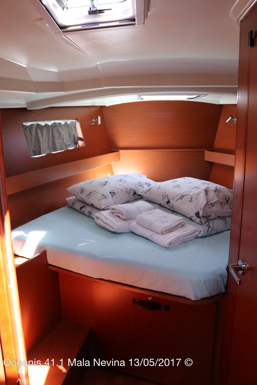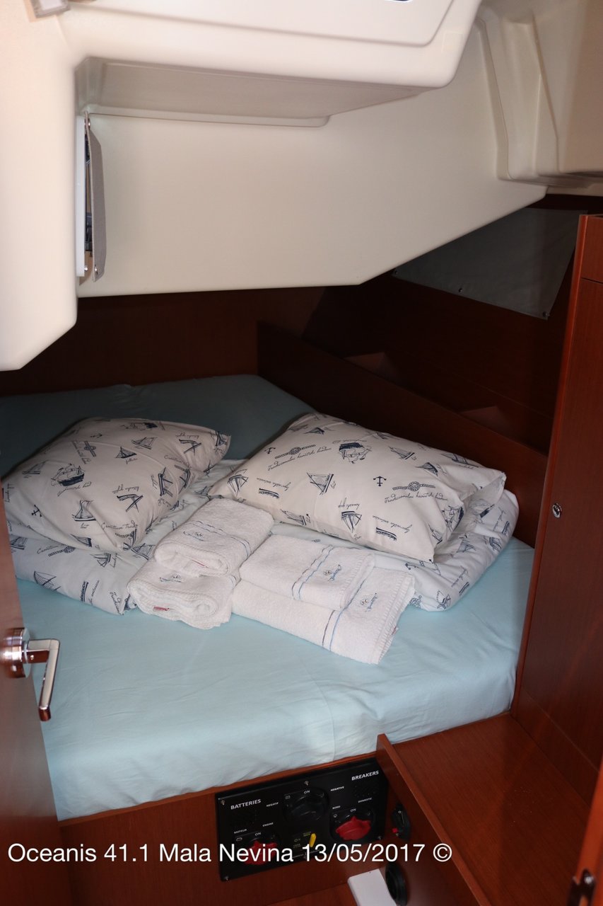 | Safety | Autopilot, Bootsmannstuhl, Bordapotheke, Bordwerkzeug, Bugstrahlruder, Feststoffschwimmwesten, Handbilgepumpe, Leuchtboje, Lifebelts, Navigationslichter, Notpinne, Notsignale, Radarreflektor, Rettungskragen, Taschenlampe, UKW-Funk, Zweitanker |
