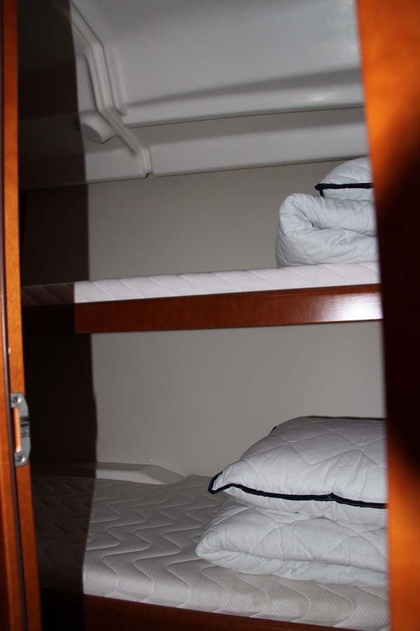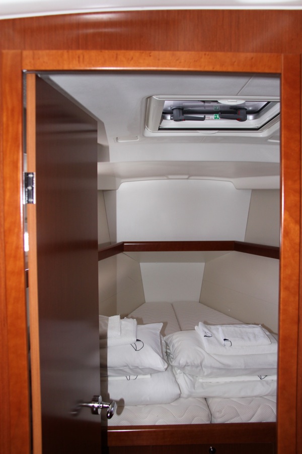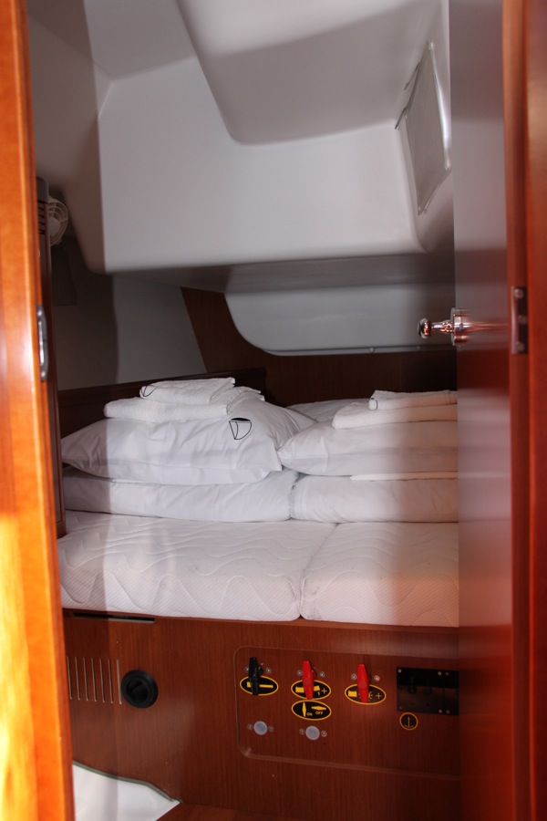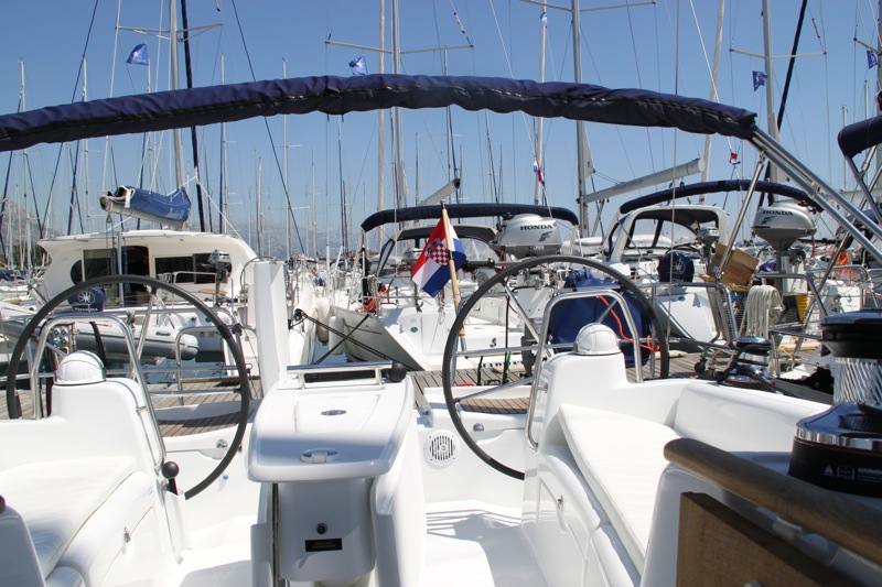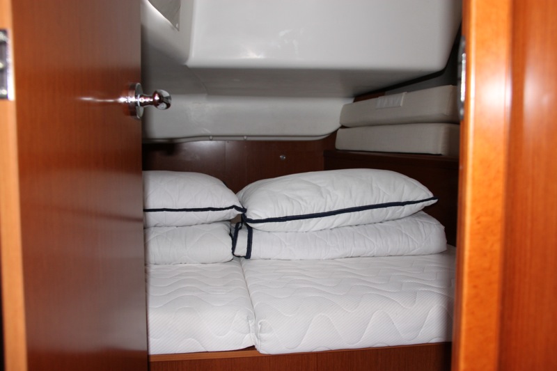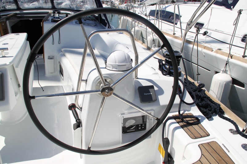 Autopilot, Bilgenalarm, Bootsmannstuhl, Bordapotheke, Bordwerkzeug, Bugstrahlruder, elektr. Bilgepumpe, Feststoffschwimmwesten, Feueraxt, Feuerlöscher, Flaggen, Handbilgepumpe, Lederhandschuhe, Nebelhorn, Notpinne, Notsignale, Ösfass, Radarreflektor, Reparaturset für Beiboot, Reserve-Motoröl, Rettungsinsel, Rettungskragen, Sicherheitsgurt, Taschenlampe, UKW-Funk, UKW-Funk m. DSC, Zweitanker |