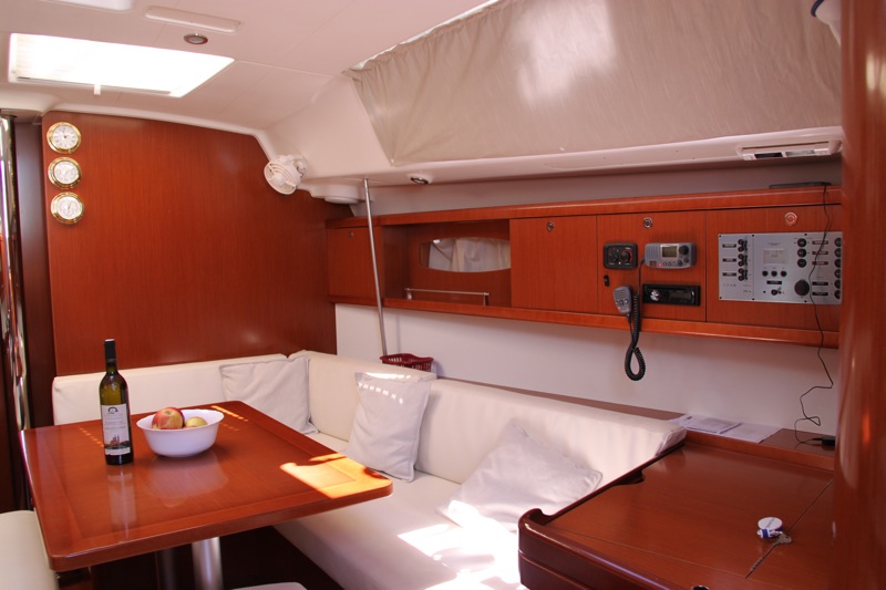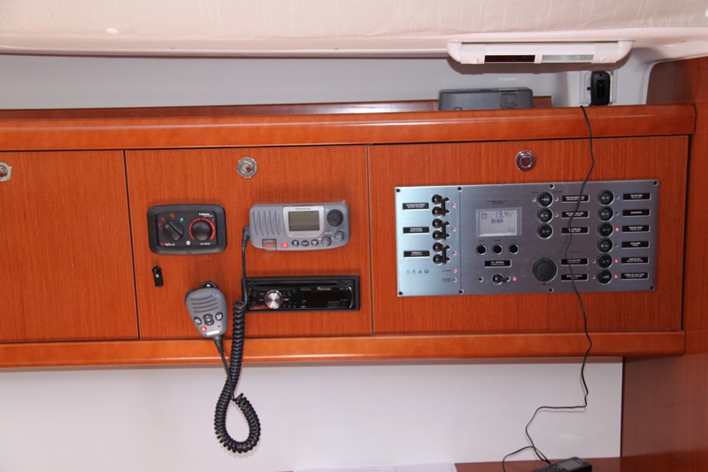 Barometer, Fernglas, GPS mit Kartenplotter im Cockpit, Hafenhandbücher, Handpeilkompass, Kompass, Motorstundenzähler, Navigationsbesteck, Seekarten, Thermometer, Tridata (Log, Echolot, Windm.), Windmesser |