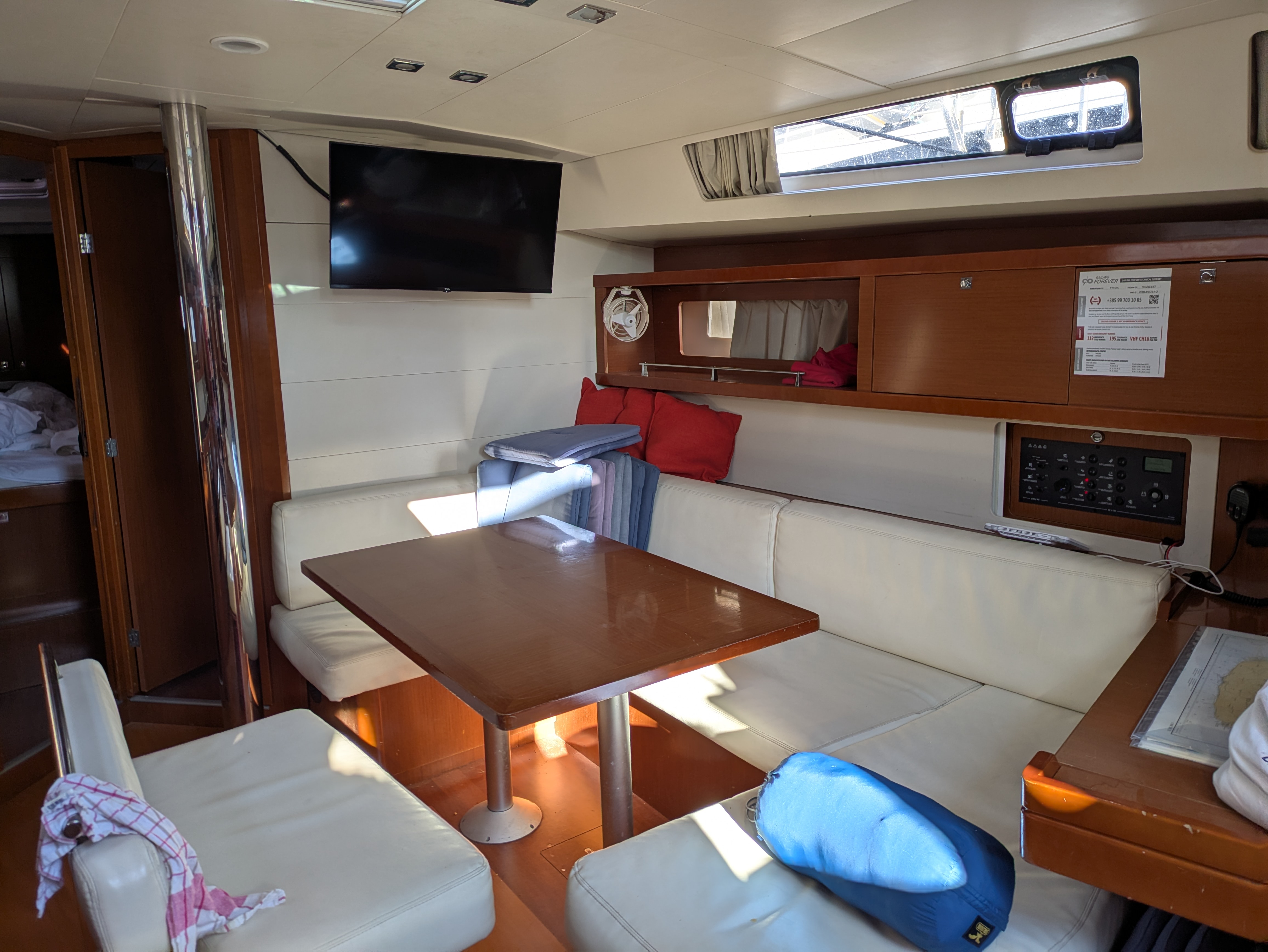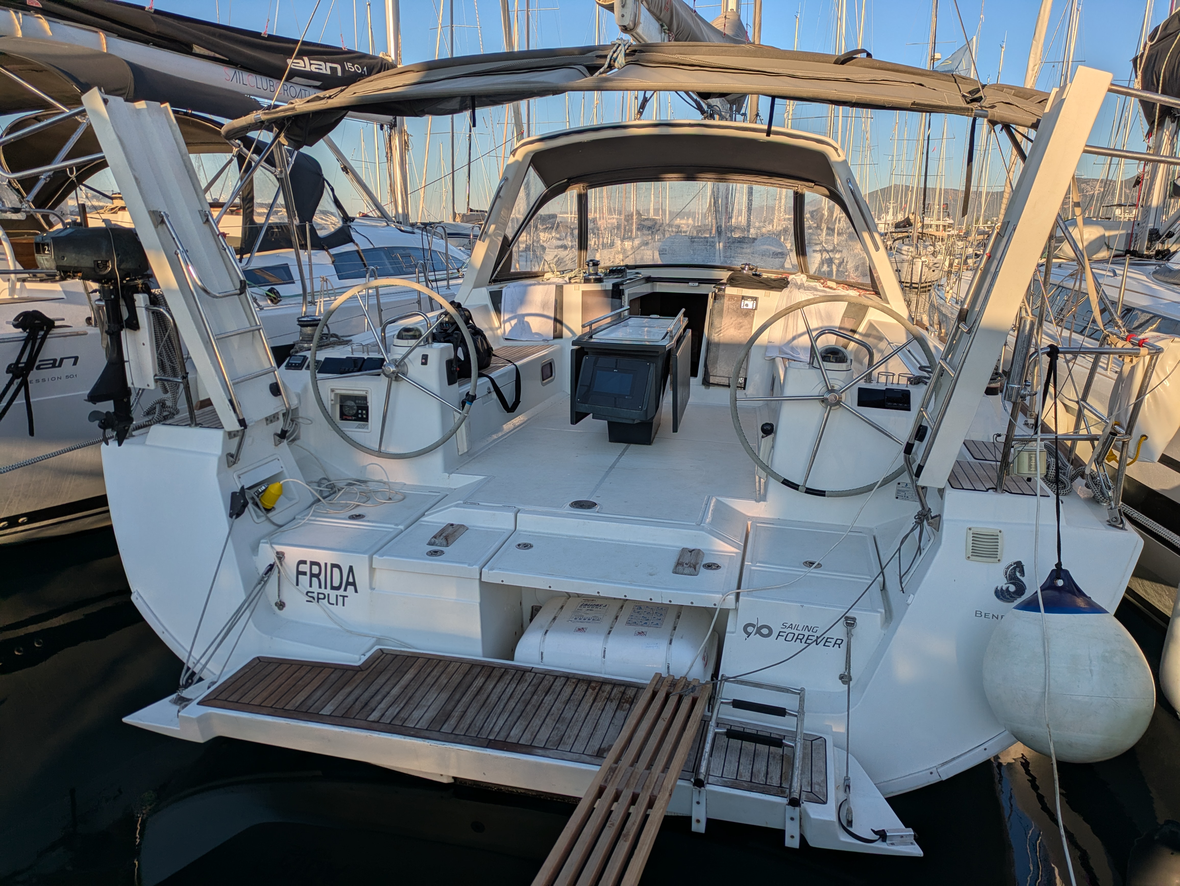 Segeltechnisch und sicherheitstechnisch ist diese 13 Jahre alte Yacht Frida 100% in Ordnung. Die Yacht hat sich auch in der Bora bewährt und ist zeitweise bis über 9 Knoten schnell unter Segeln gelaufen. Über kleinere Mängel im Komfortbereich konnten wir leicht hinwegsehen (z.B. Radio funktioniert nicht, Badeleiter ist zu kurz, Wackelkontakt an der elektrischen Bilgepumpe etc.; Kommentar des Personals: „das ist Frida“). Das Preis-Leistungs-Verhältnis ist sehr gut (Törn im September/Oktober). Das Personal der Basis ist ausgesprochen freundlich und zuverlässig. Ein 220V-Inverter für ein medizinisches Gerät eines Crewmitgliedes wurde uns auf Wunsch sofort eingebaut. Check-in und Check-out waren ohne nennenswerte Wartezeiten, wir konnten die Yacht am Samstag bereits um 14:00 Uhr übernehmen und gleich losfahren. Am Ende des Törns war der Wind sehr stark und es bestand die Möglichkeit dass die Marina Kastela am Freitag geschlossen ist. Wir wurden rechtzeitig per WhatsApp informiert und hatten dann kontinuierlich Kontakt zur Basis mit klaren Weisungen und Vorschlägen, was zu tun ist. Das war sehr hilfreich. Wir würden die gleiche Yacht bei dieser Basis jederzeit wieder chartern.