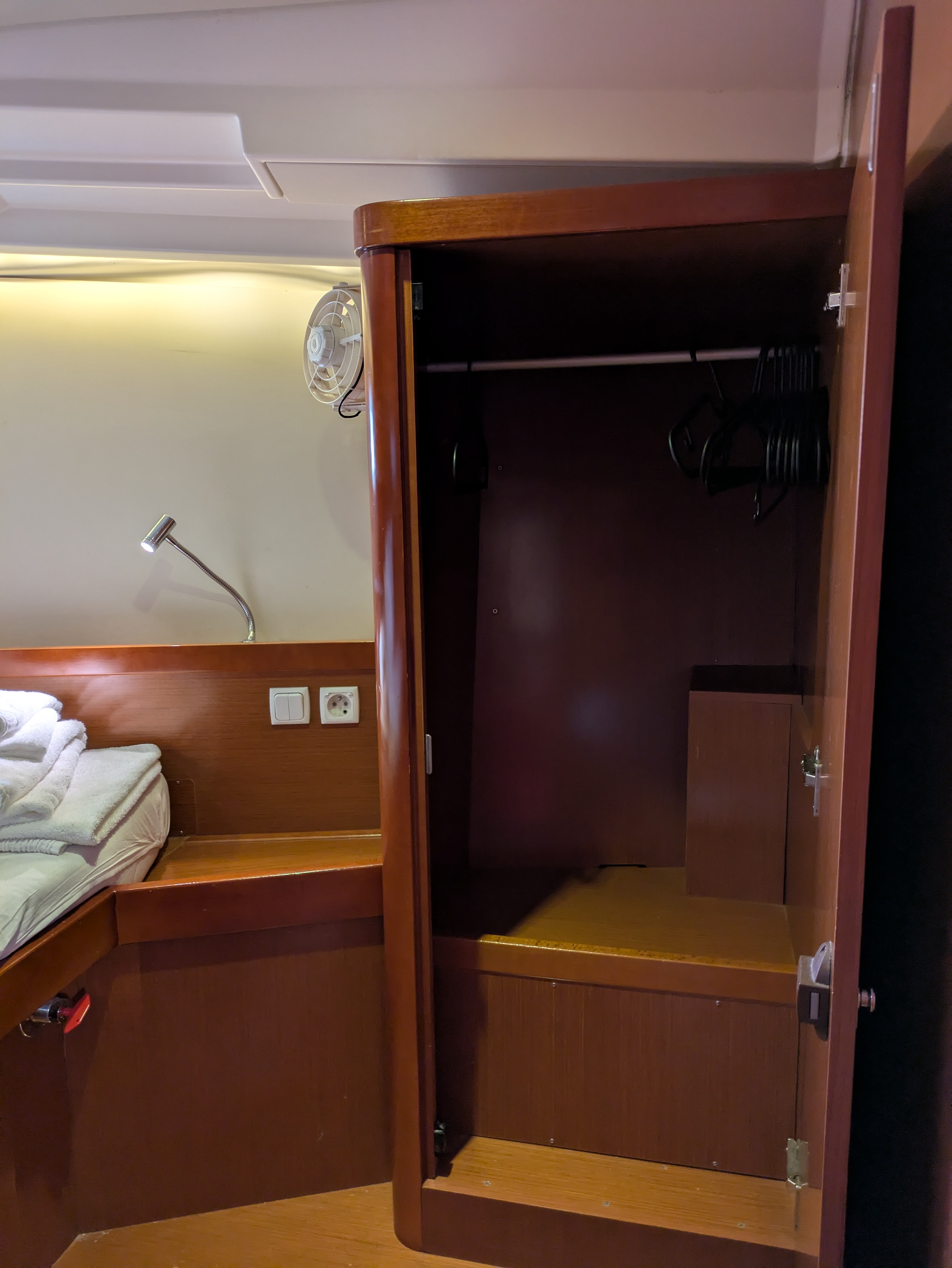 | Outside | Anker mit Kette, Biminitop, Bootshaken, Cockpitdusche, Cockpitlautsprecher, Cockpittisch, elektr. Ankerwinsch, Fender, Gangway, Kugelfender, Solaranlage, Sprayhood |