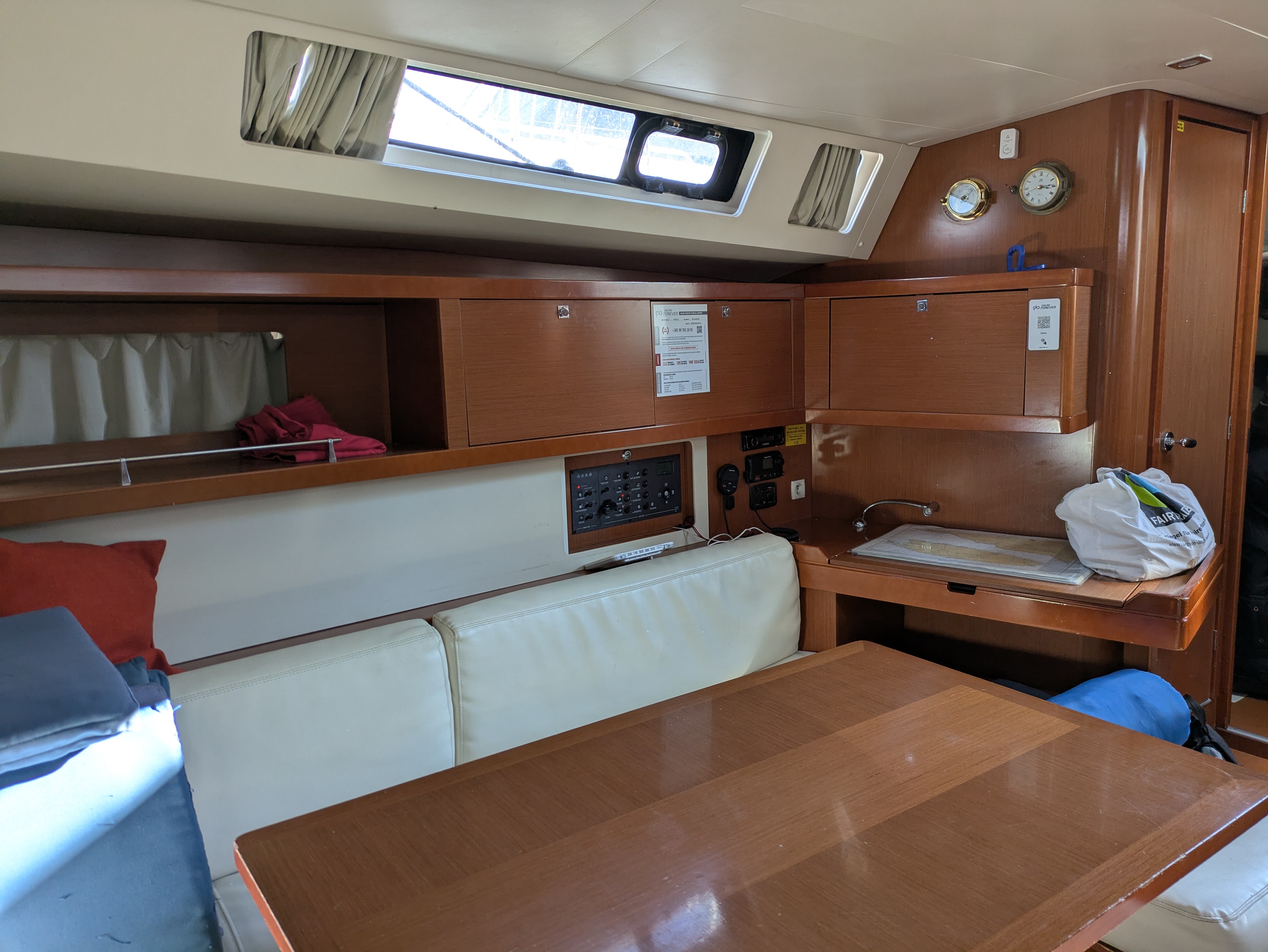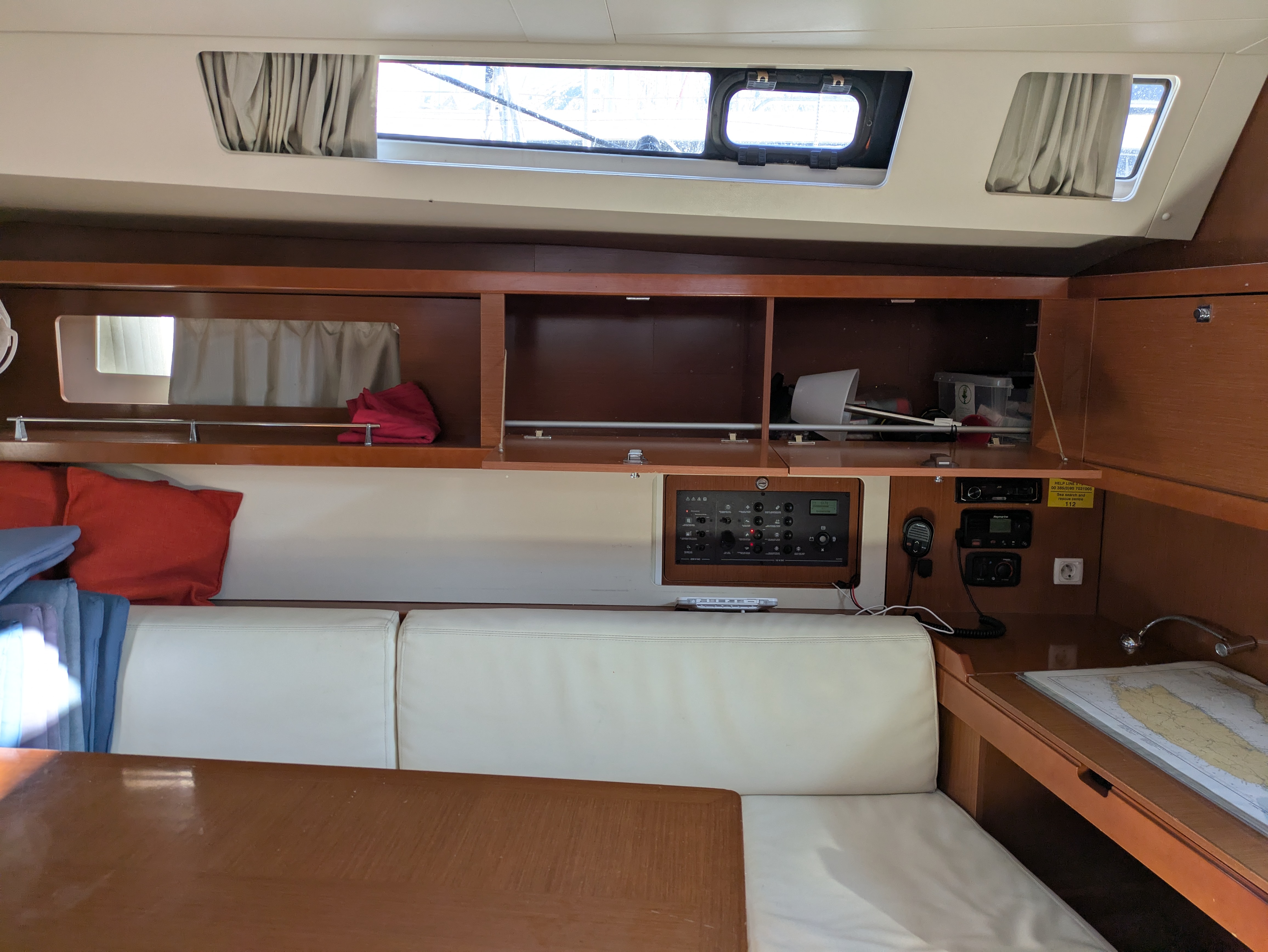 | Navigation | Fernglas, GPS mit Kartenplotter im Cockpit, Hafenhandbücher, Kompass, Seekarten, Windmesser |