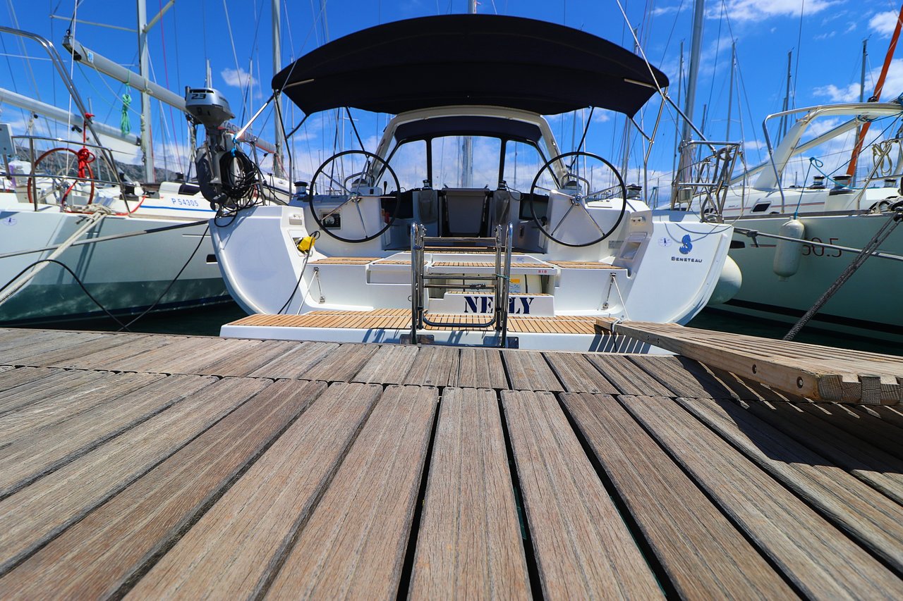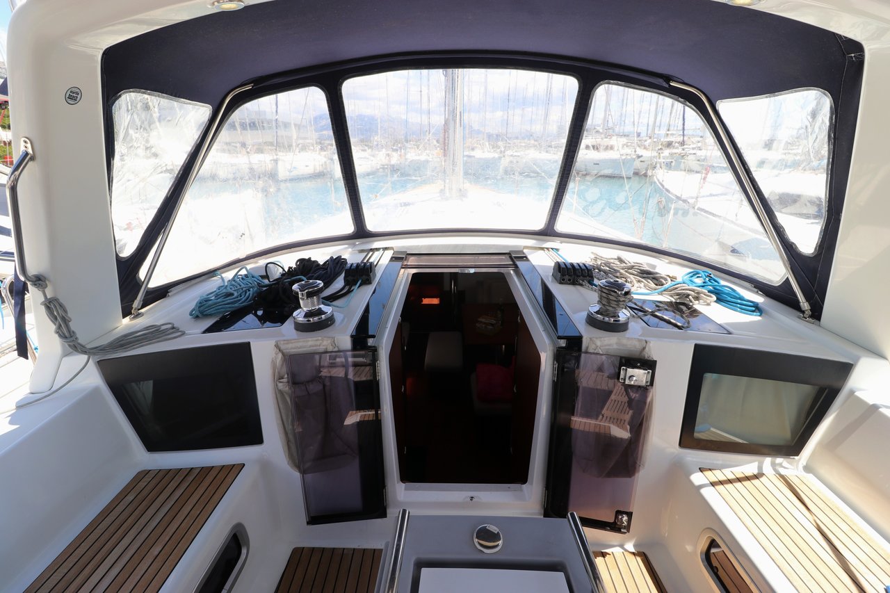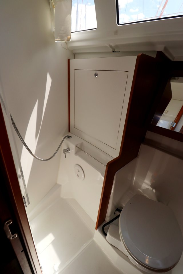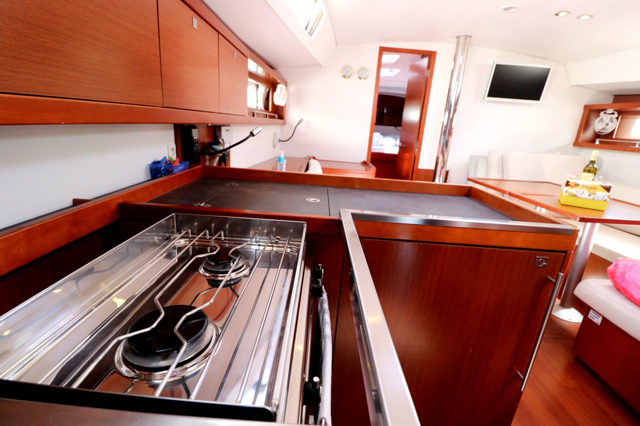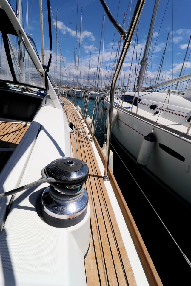 | Outside | 220 V-Landanschluss, Anker mit Kette, Badeplattform, Biminitop, Cockpitdusche, Cockpitkühlschrank, Cockpitlautsprecher, Cockpitpolster, elektr. Ankerwinsch, Fender, Festmacherleinen, Gangway, Sprayhood, Teak im Cockpit, Teakdeck |