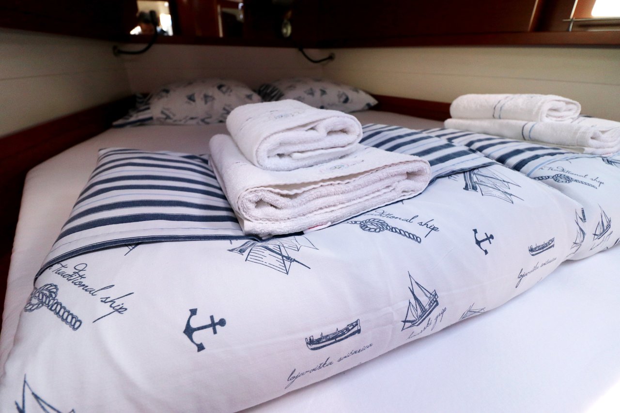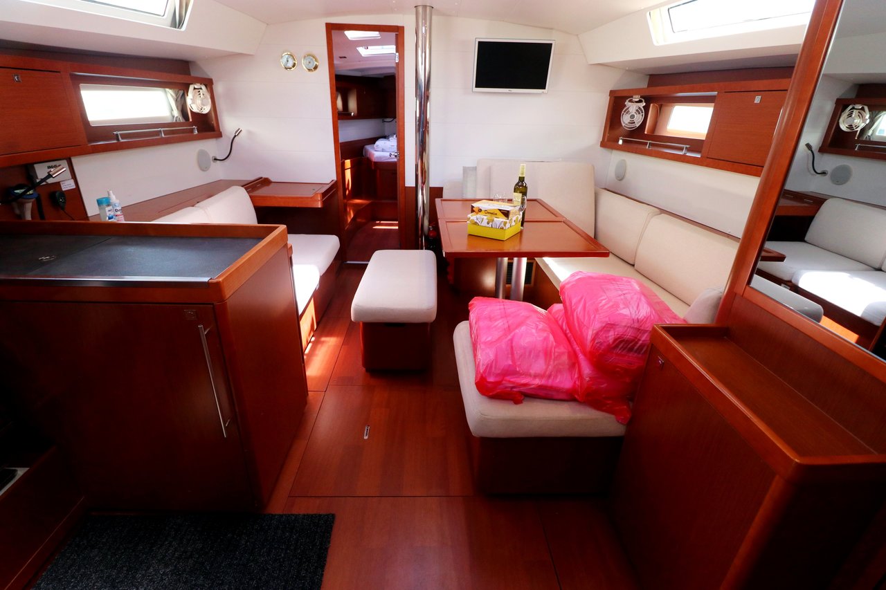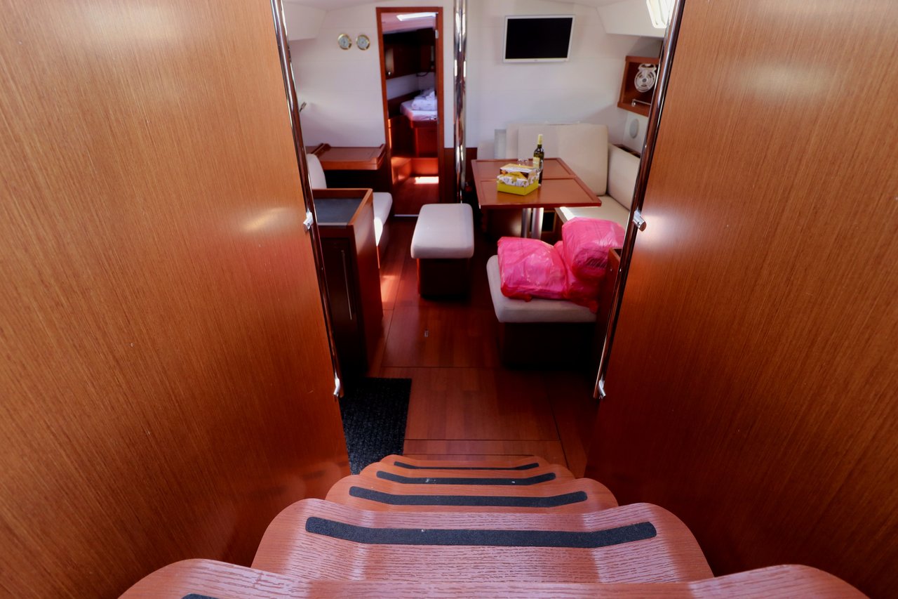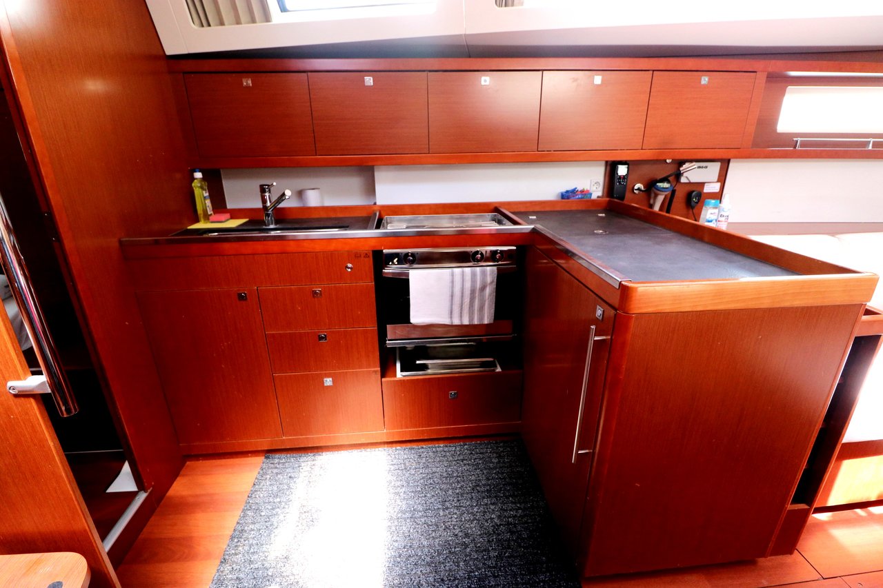 | Outside | 220 V-Landanschluss, Anker mit Kette, Badeplattform, Biminitop, Cockpitdusche, Cockpitkühlschrank, Cockpitlautsprecher, Cockpitpolster, elektr. Ankerwinsch, Fender, Festmacherleinen, Gangway, Sprayhood, Teak im Cockpit, Teakdeck |