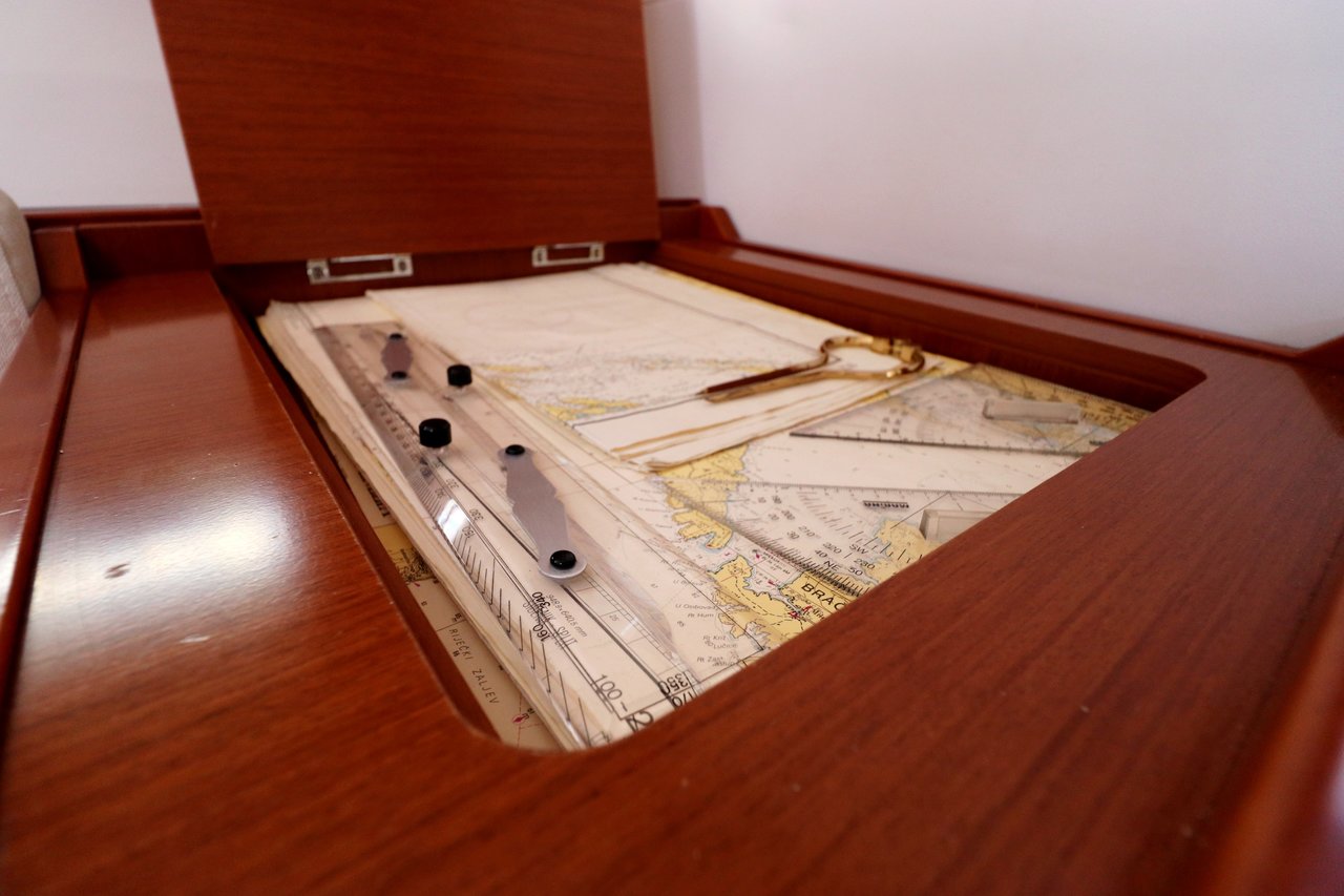 | Navigation | GPS mit Kartenplotter im Cockpit, Hafenhandbücher, Kompass, Seekarten |