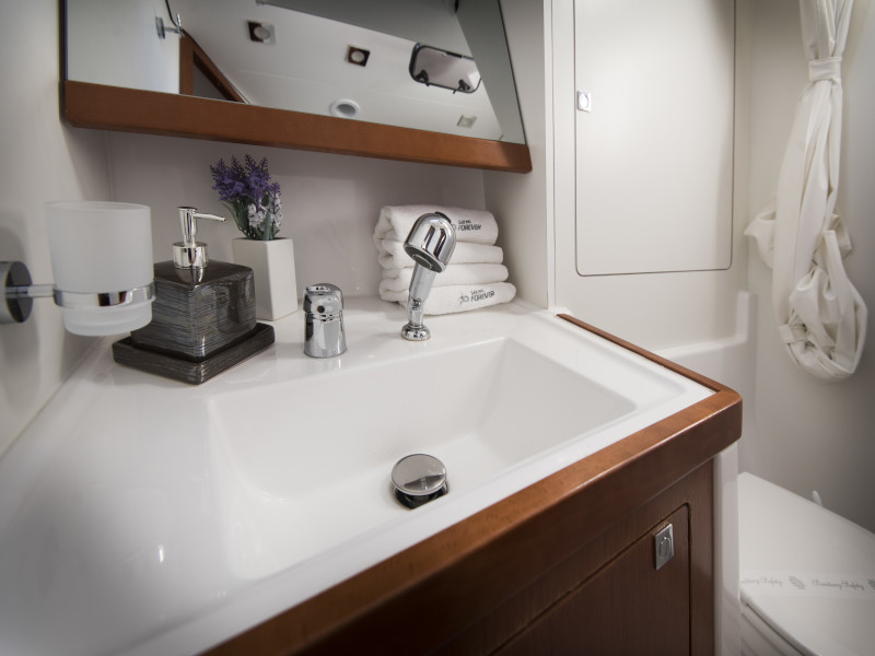 | Safety | Automatikwesten, Autopilot, Bordapotheke, Bugstrahlruder, Feuerlöscher, Handbilgepumpe, Nebelhorn, Notsignale, UKW-Funk |