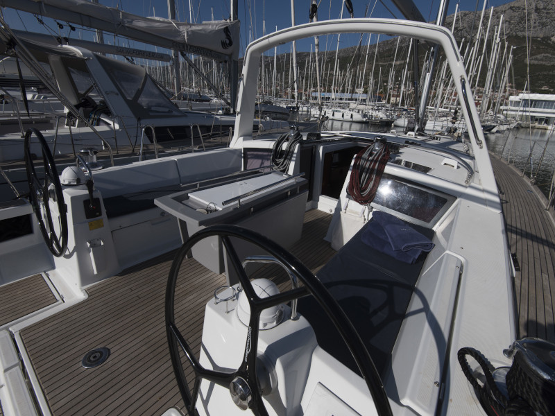 | Outside | Anker mit Kette, Biminitop, Bootshaken, Cockpittisch, Fender, Gangway, Solaranlage, Sprayhood, Teakdeck |