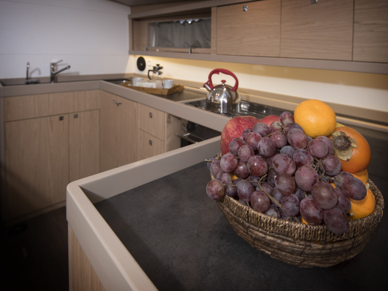 | Safety | Automatikwesten, Autopilot, Bordapotheke, Bugstrahlruder, Feuerlöscher, Handbilgepumpe, Lifebelts, Notsignale, UKW-Funk |