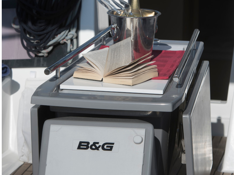 | Navigation | Echolot, GPS mit Kartenplotter im Cockpit, Hafenhandbücher, Kompass, Seekarten, Sumlog, Windmesser |