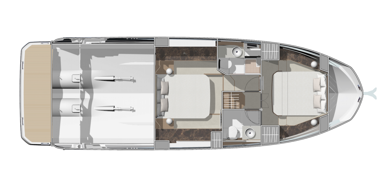 | Outside | Badeplattform, Biminitop, Hardtop, Tenderlift, Unterwasserbeleuchtung |