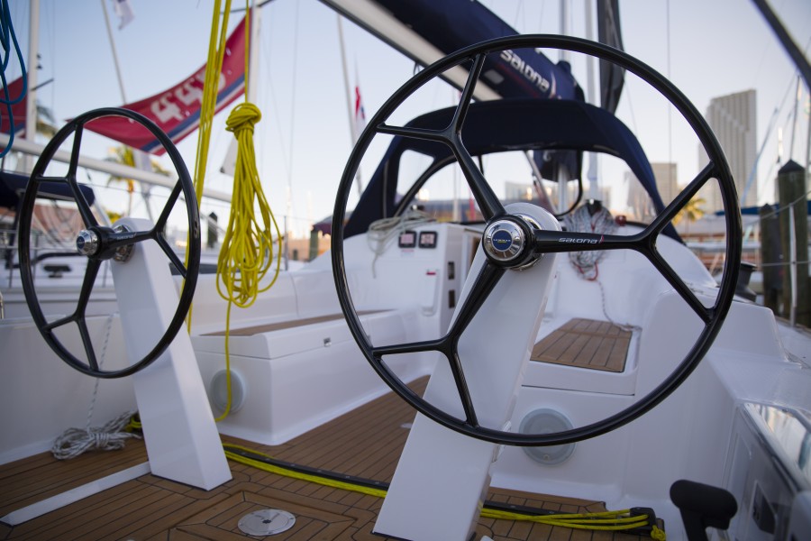 | Outside | Anker mit Kette, Badeleiter, Biminitop, Cockpitdusche, Cockpitlautsprecher, Cockpittisch, elektr. Ankerwinsch, Festmacherleinen, Sonnensegel, Sprayhood |