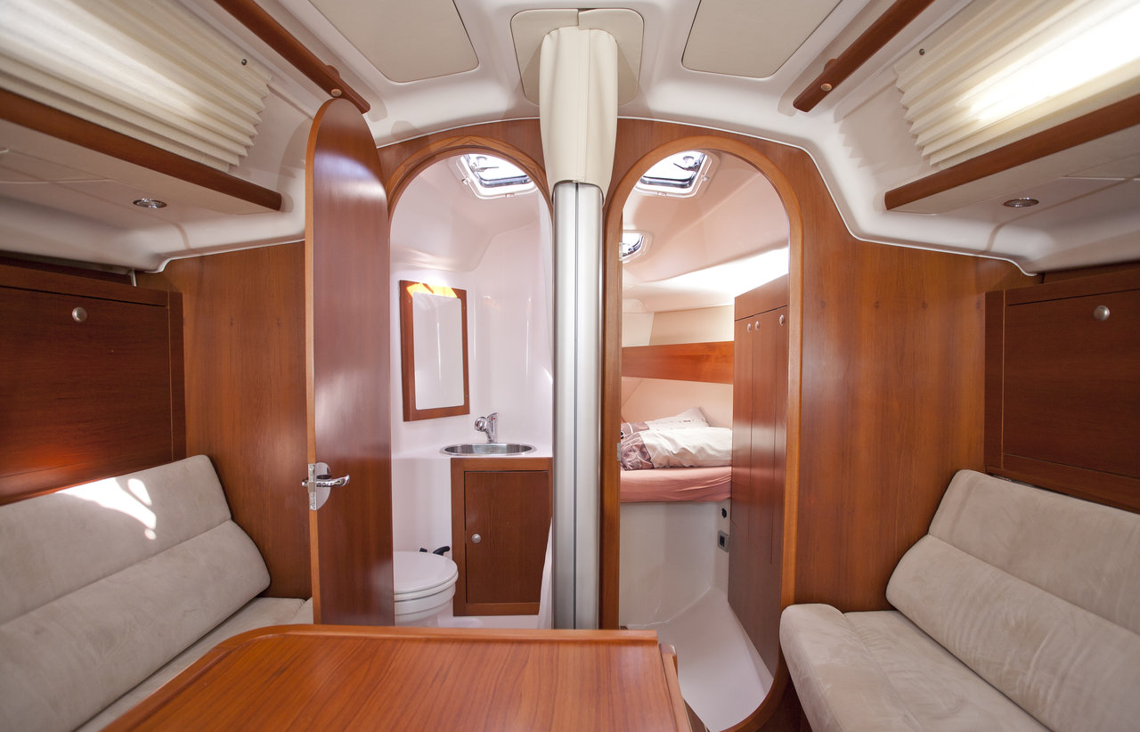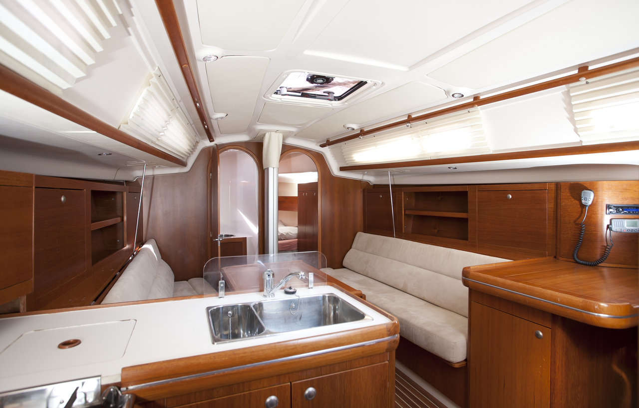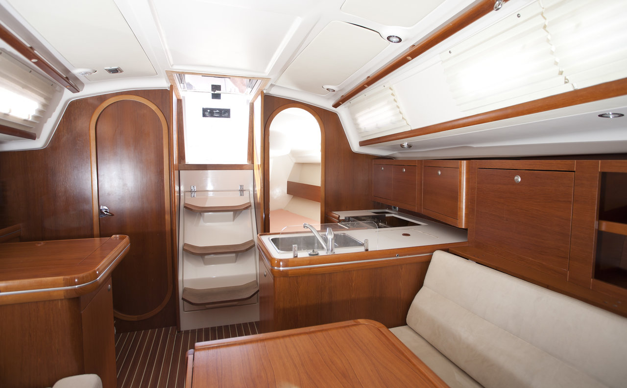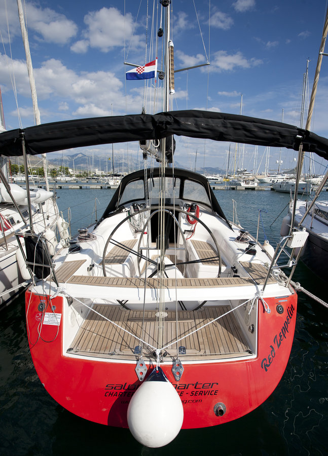 Outside 12 V-Anschluss, 220 V-Landanschluss, Anker mit Kette, Anker mit Seil, Badeleiter, Biminitop, Cockpitdusche, Cockpitlautsprecher, Cockpittisch, elektr. Ankerwinsch, Fender, Festmacherleinen, Sprayhood, Teak im Cockpit, Windex