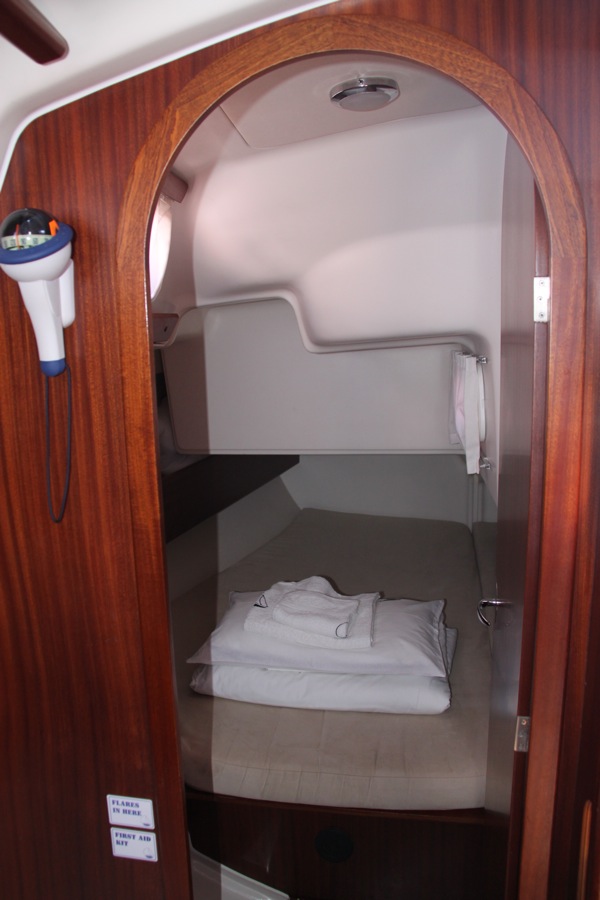 Autopilot, Bootsmannstuhl, Bordapotheke, Bordwerkzeug, elektr. Bilgepumpe, Feueraxt, Feuerlöscher, Flaggen, Handbilgepumpe, Lederhandschuhe, Nebelhorn, Notpinne, Notsignale, Ösfass, Radarreflektor, Reparaturset für Beiboot, Rettungsinsel, Rettungskragen, Rettungswesten, Sicherheitsgurt, Taschenlampe, UKW-Funk, UKW-Funk m. DSC, Zweitanker |