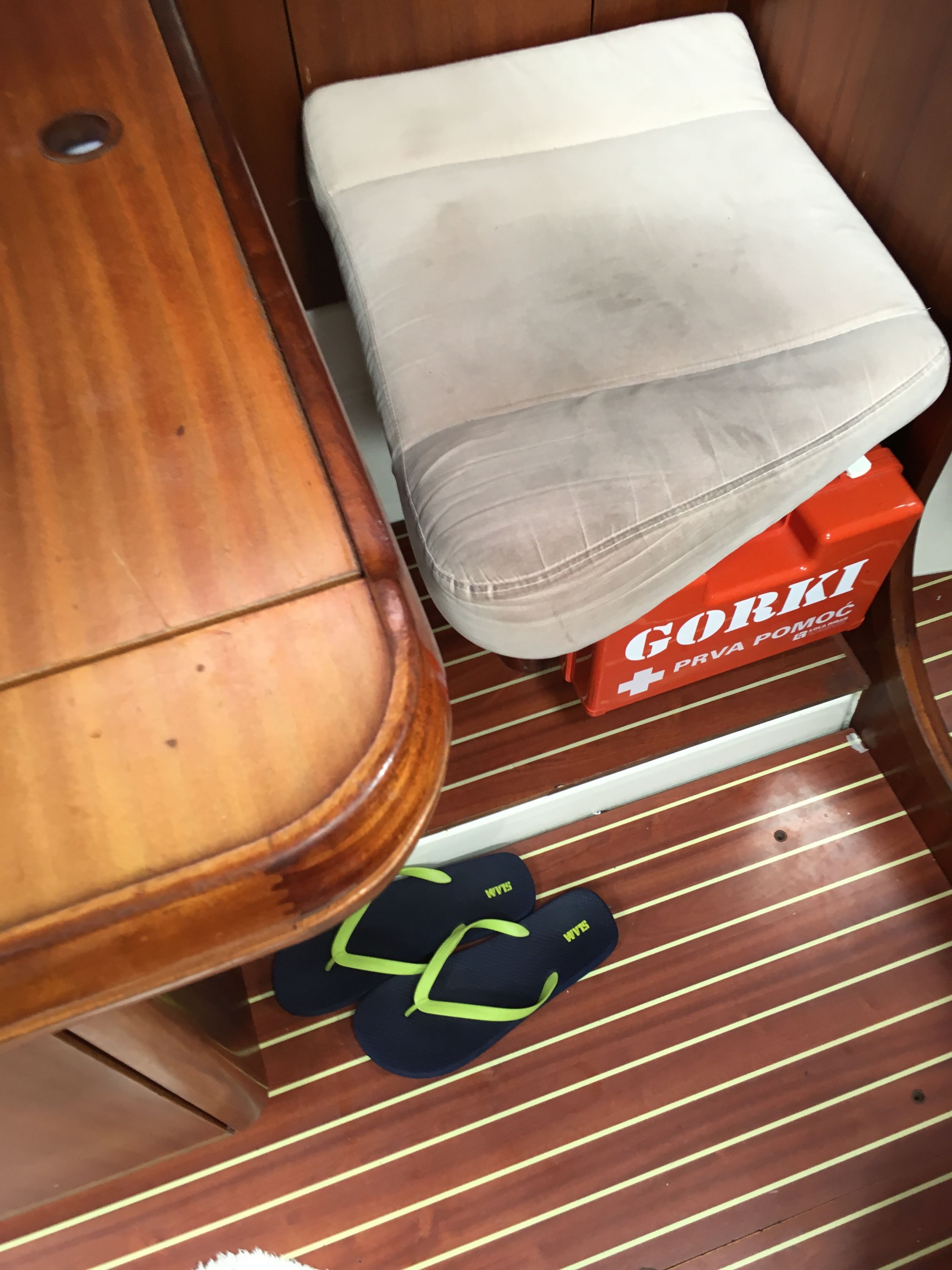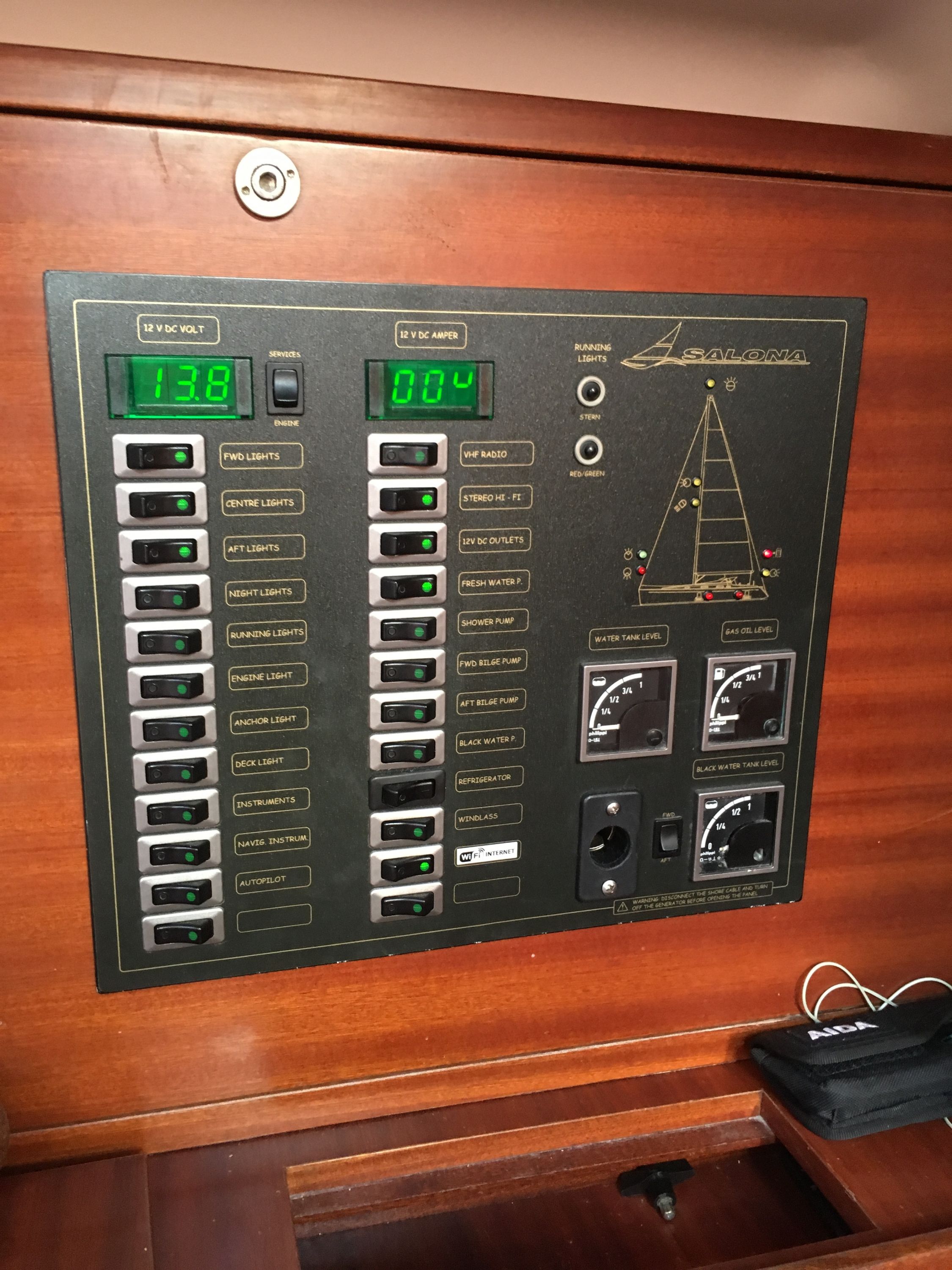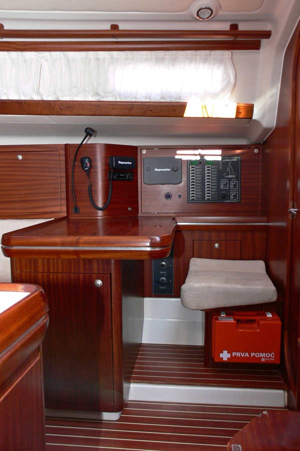 Barometer, Fernglas, GPS mit Kartenplotter, Hafenhandbücher, Handpeilkompass, Kompass, Motorstundenzähler, Navigationsbesteck, Seekarten, Thermometer, Tridata (Log, Echolot, Windm.), Windmesser |
