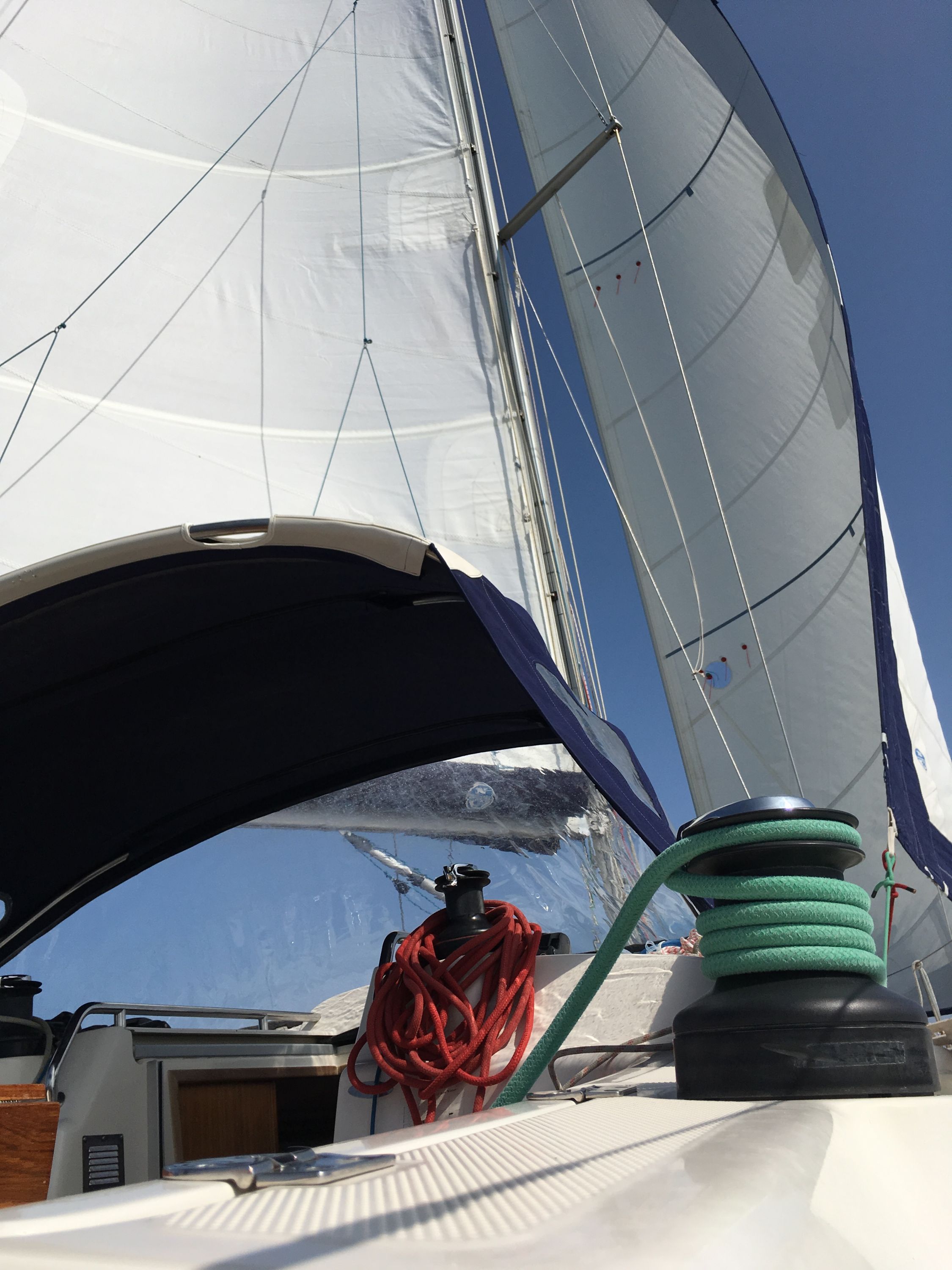 Lattengroßsegel, Lazy-Jack System, Rollgenua, Spi-Baum |