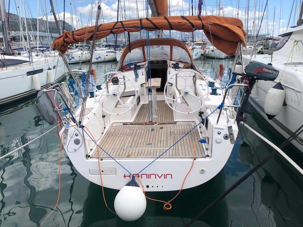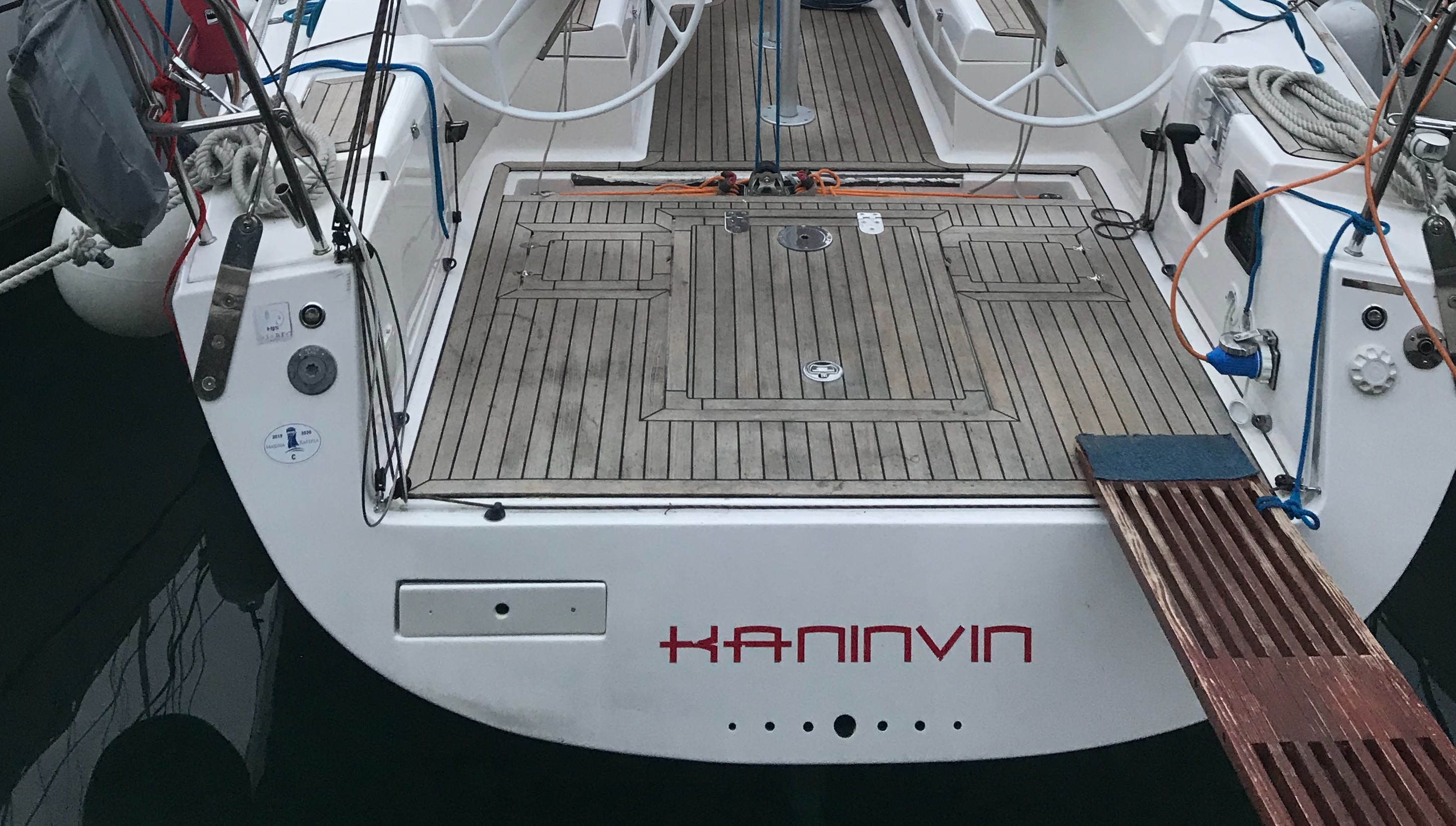 | Outside | 220 V-Landanschluss, Anker mit Kette, Biminitop, Cockpitdusche, Cockpitlautsprecher, Cockpitpolster, Cockpittisch, elektr. Ankerwinsch, Fender, Festmacherleinen, Gangway, Sprayhood, Teak im Cockpit |