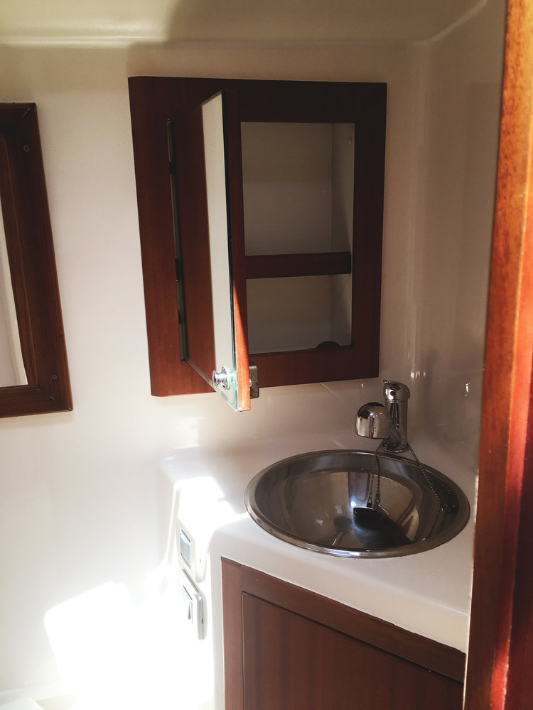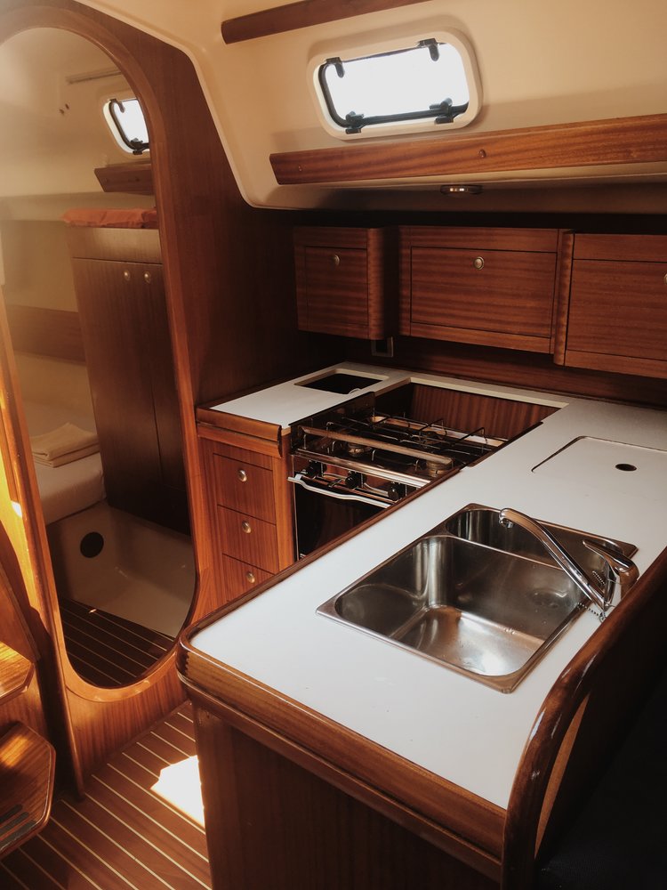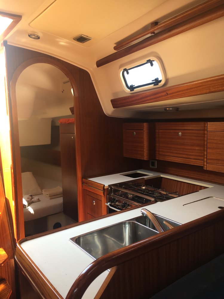 | Outside | Biminitop, Cockpitdusche, Cockpittisch, elektr. Ankerwinsch, Gangway, Sprayhood, Teak im Cockpit |