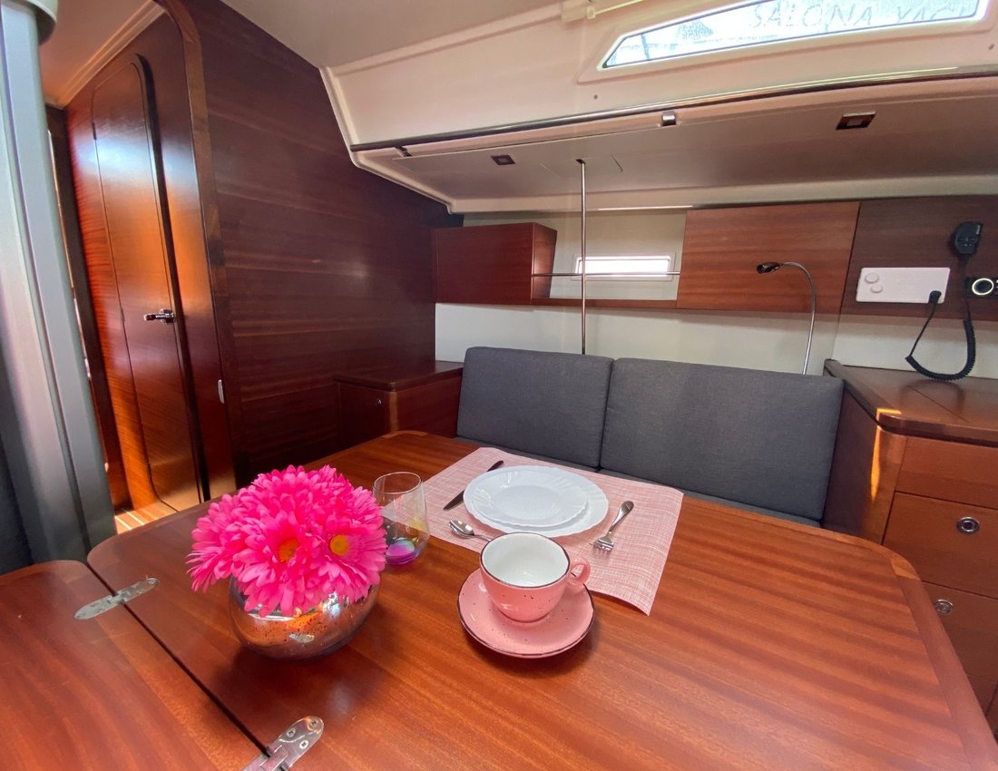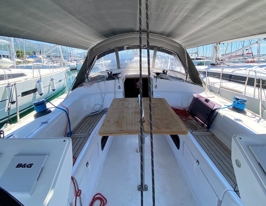 | Outside | Anker mit Kette, Cockpitdusche, Cockpitlautsprecher, Cockpittisch (klappbar), Delta-Anker, elektr. Ankerwinsch, Faltpropeller, Fender, Festmacherleinen, Gangway, Sprayhood |