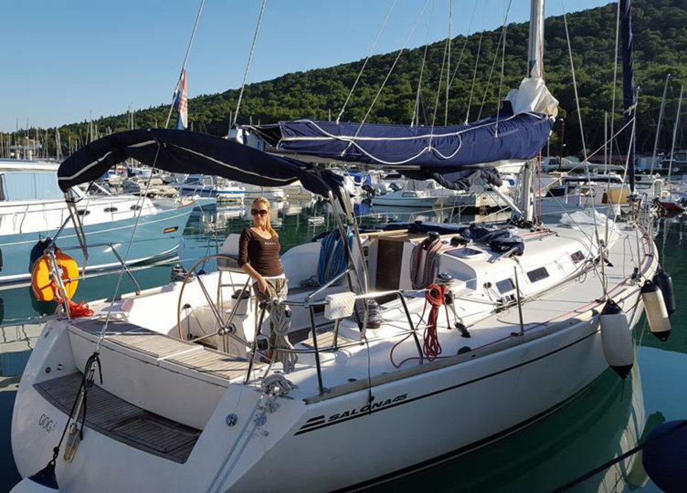 | Outside | 12 V-Anschluss, 220 V-Landanschluss, Abnehmbarer Cockpittisch, Anker mit Kette, Badeleiter, Biminitop, Cockpitdusche, Cockpitlautsprecher, Cockpitpolster, Cockpittisch, elektr. Ankerwinsch, Fender, Festmacherleinen, Gangway, Sprayhood, Teak im Cockpit, Windex |