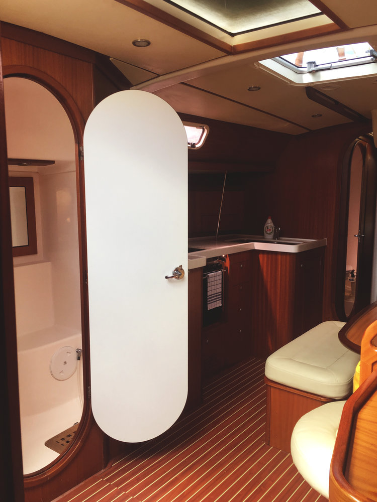 | Safety | Autopilot, Bordapotheke, Bordwerkzeug, Bugstrahlruder, Feststoffschwimmwesten, Feuerlöscher, Licht und Leine für Rettungskragen, Lifebelts, Motor-Ersatzteile, Notpinne, Notsignale, Rettungsinsel, Taschenlampe, UKW-Funk, Zweitanker |