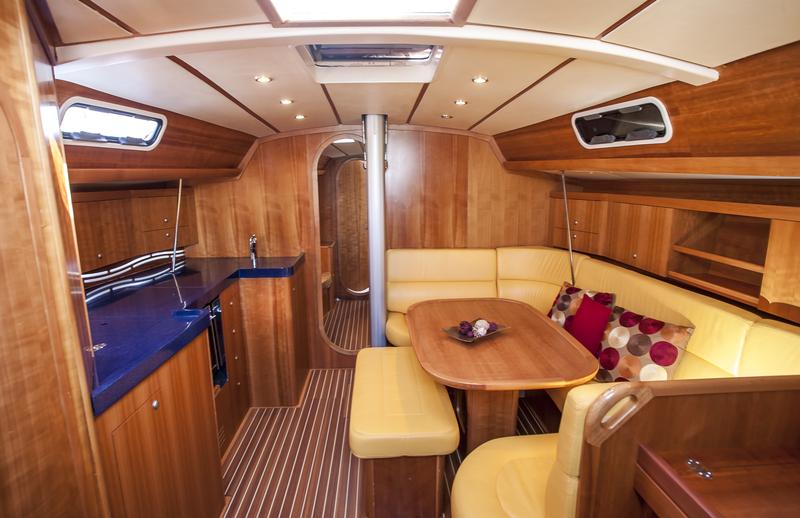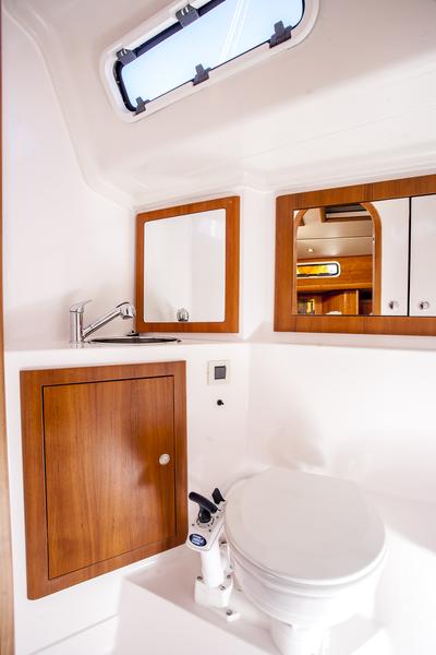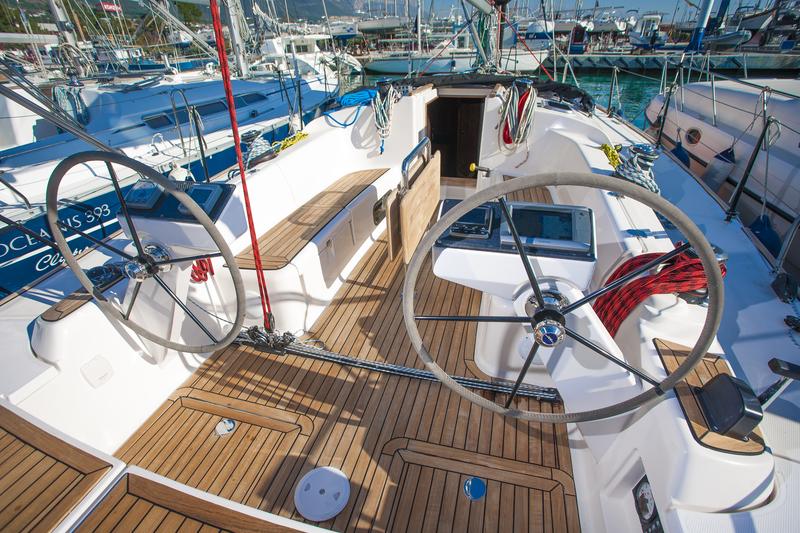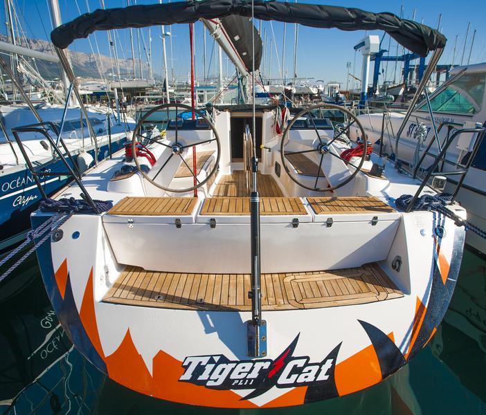 | Outside | Abnehmbarer Cockpittisch, Anker mit Kette, Badeleiter, Biminitop, Cockpitdusche, Cockpitlautsprecher, elektr. Ankerwinsch, Sonnensegel, Sprayhood, Teak im Cockpit |